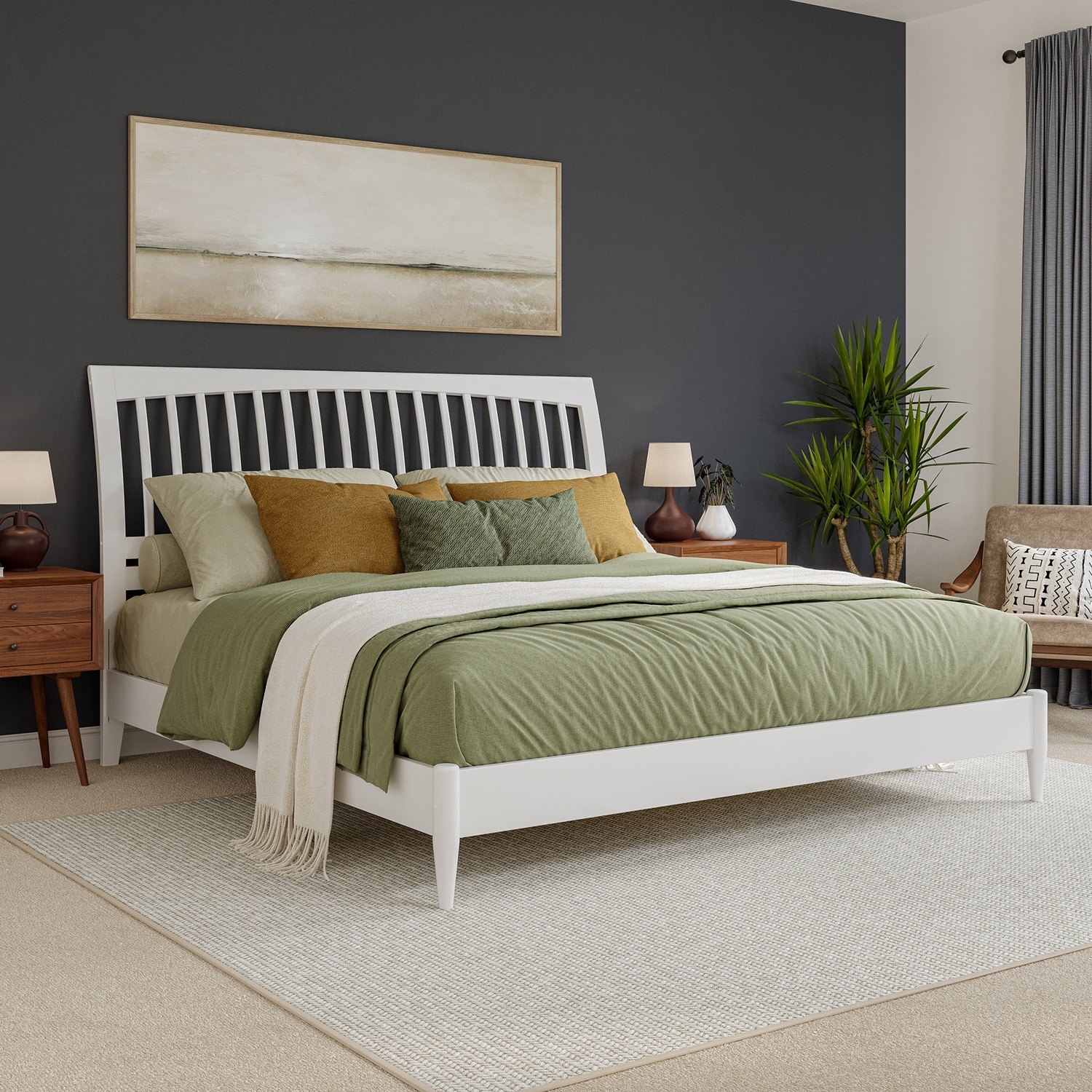 King Size Wood Platform Bed - Low Profile Sleigh Bed Frame - Modern Bedroom Furniture in White