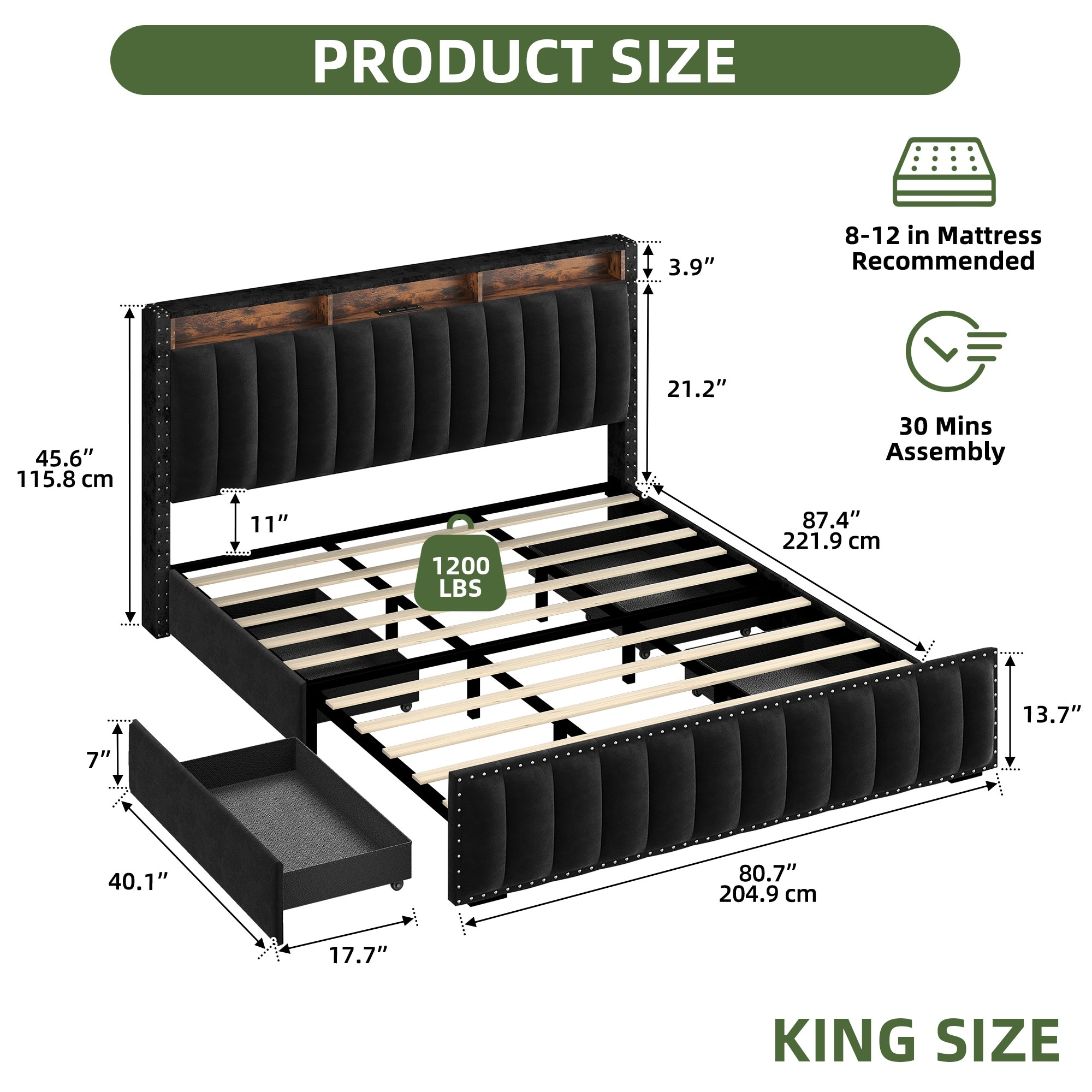 Farmhouse Queen/Full size Bed Frame, Platform Bed Frame with Storage Space,Power Outlet LED Lights
