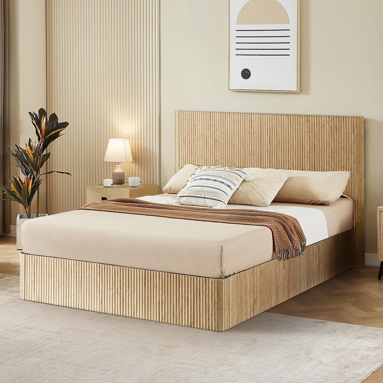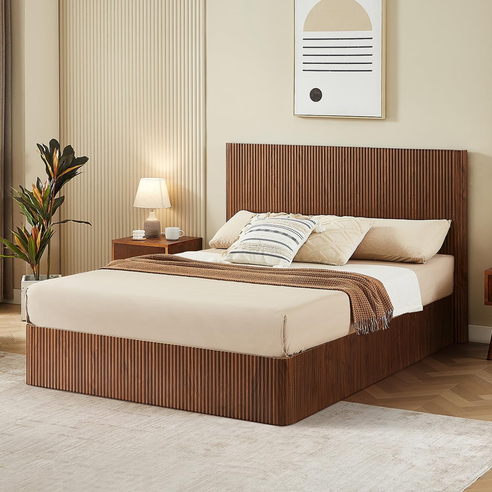 Queen Lift Up Storage Bed Frame, Wood Hydraulic Queen Size Bedframe with Headboard