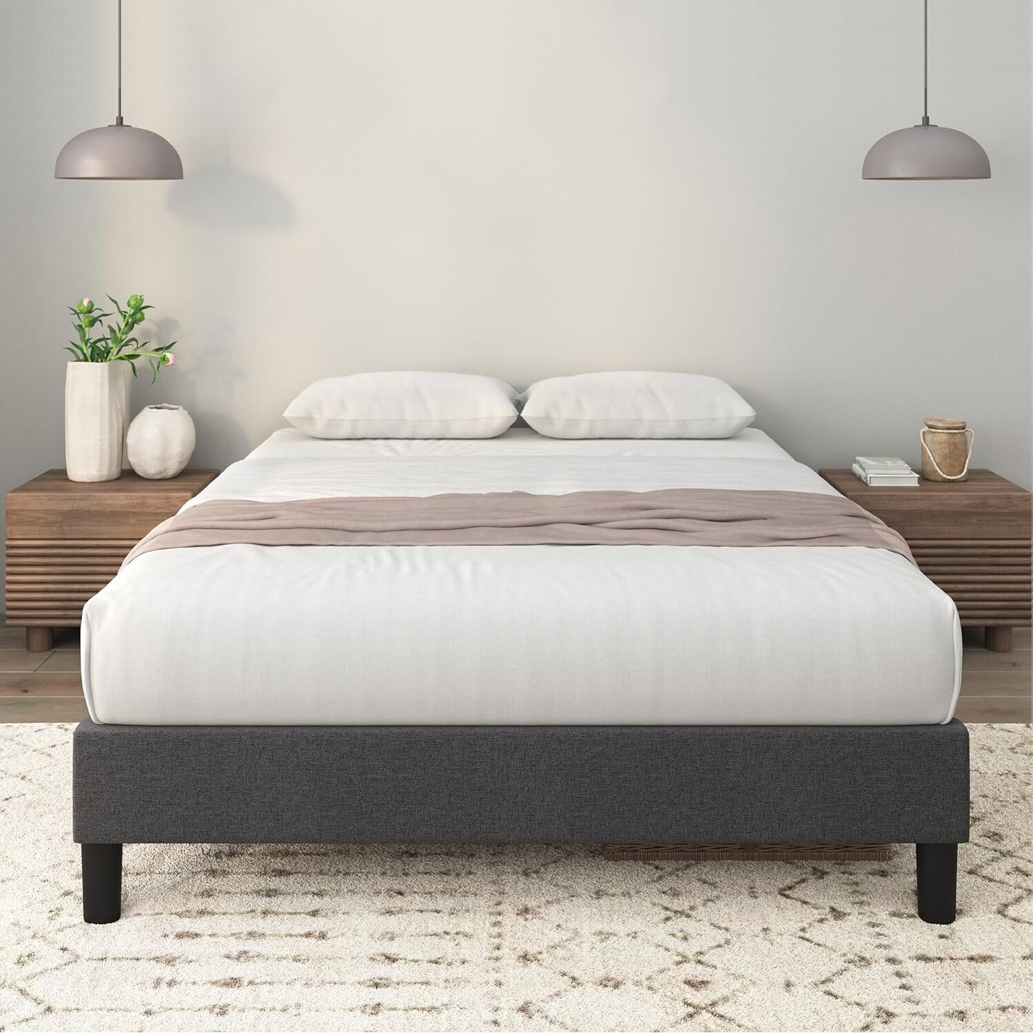 Elegant Bed Frame with Upholstered Headboard No Box Spring Needed