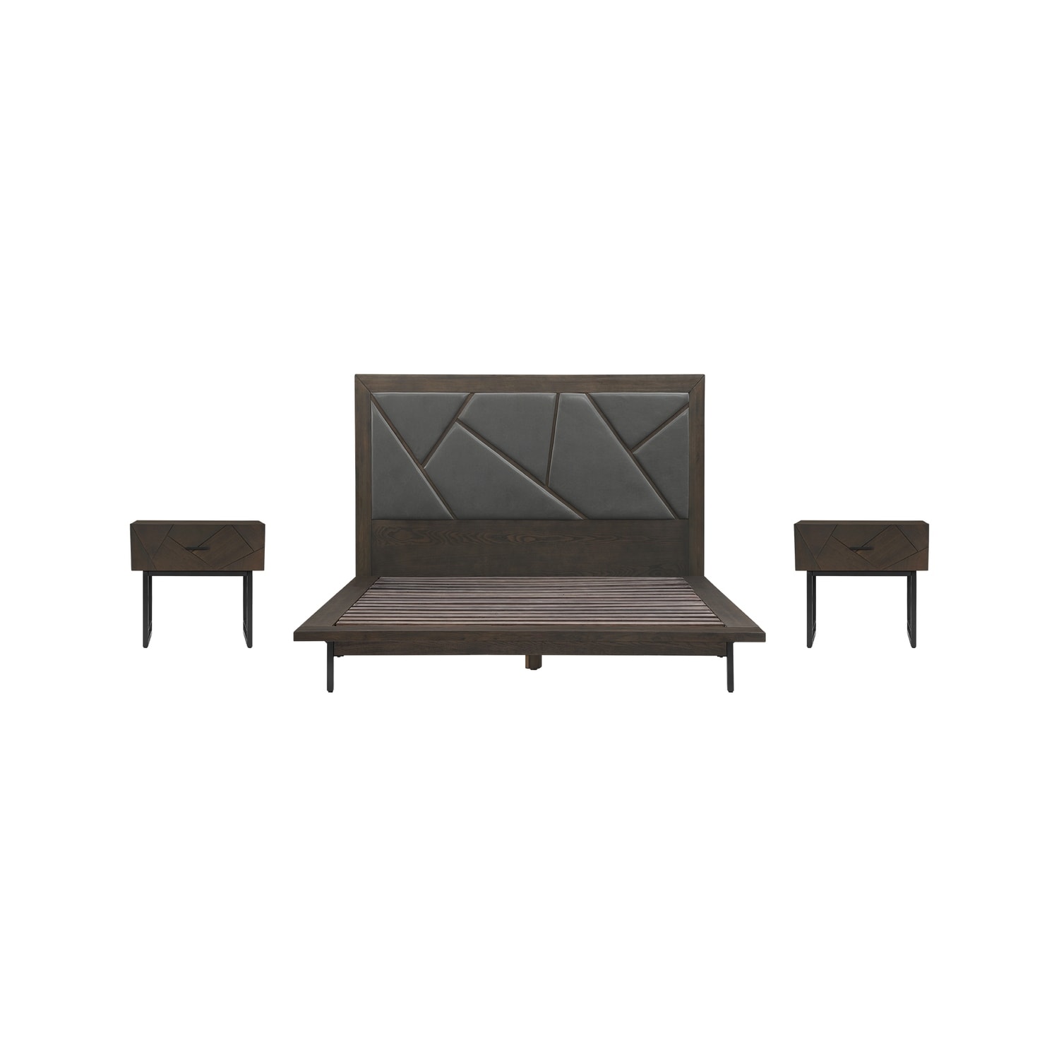 Coastal Bedroom Set Oak Wood Bed Frame with Faux Leather Headboard & Nightstands