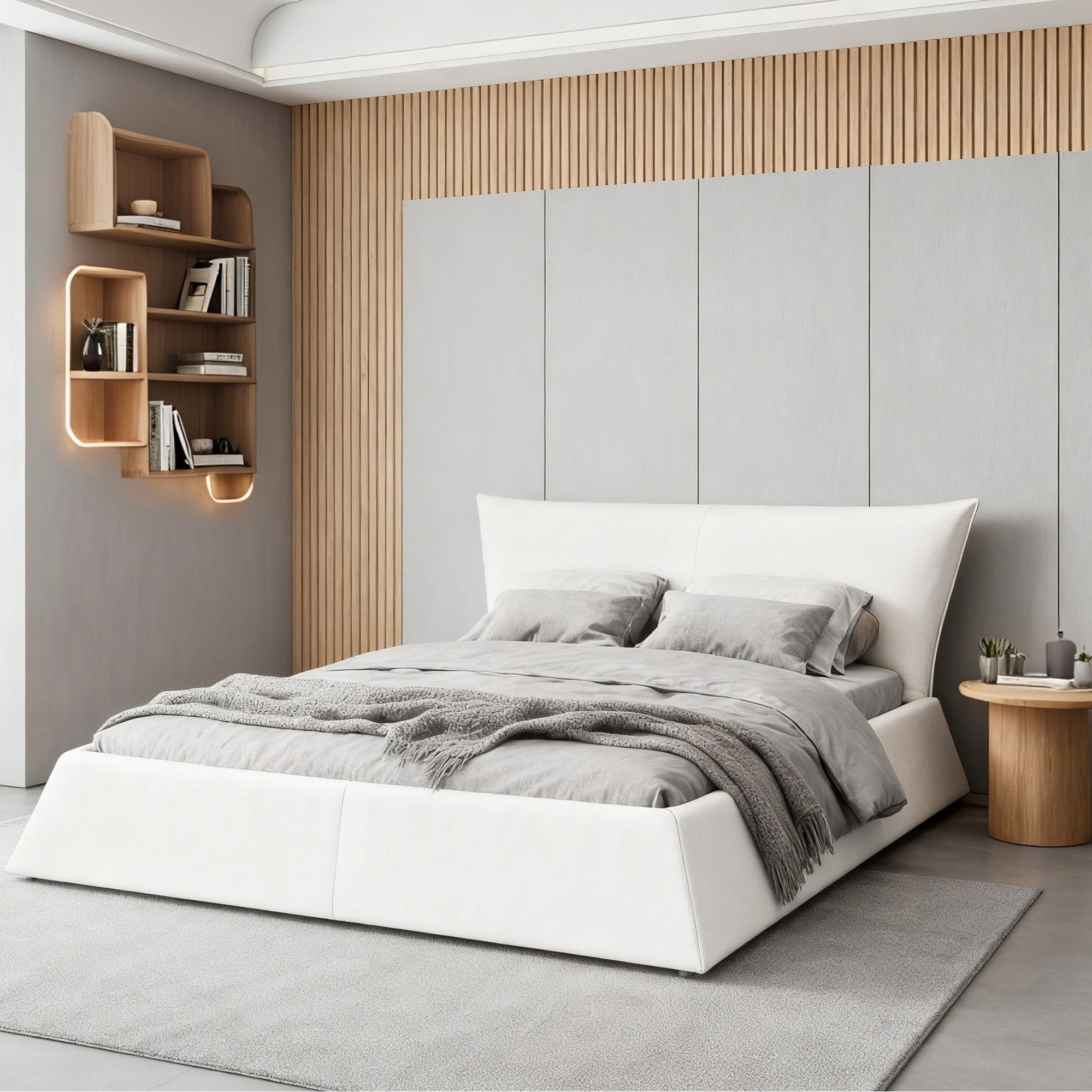Roomfitters Upholstered Wingback Platform Bed with Headboard, Queen Size, Light Grey