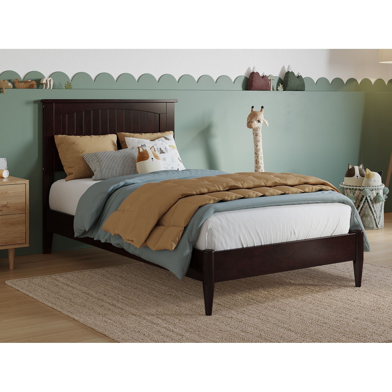 Solid Wood Low Profile Platform Bed - Twin Size, Espresso Finish, Modern Bedroom Furniture