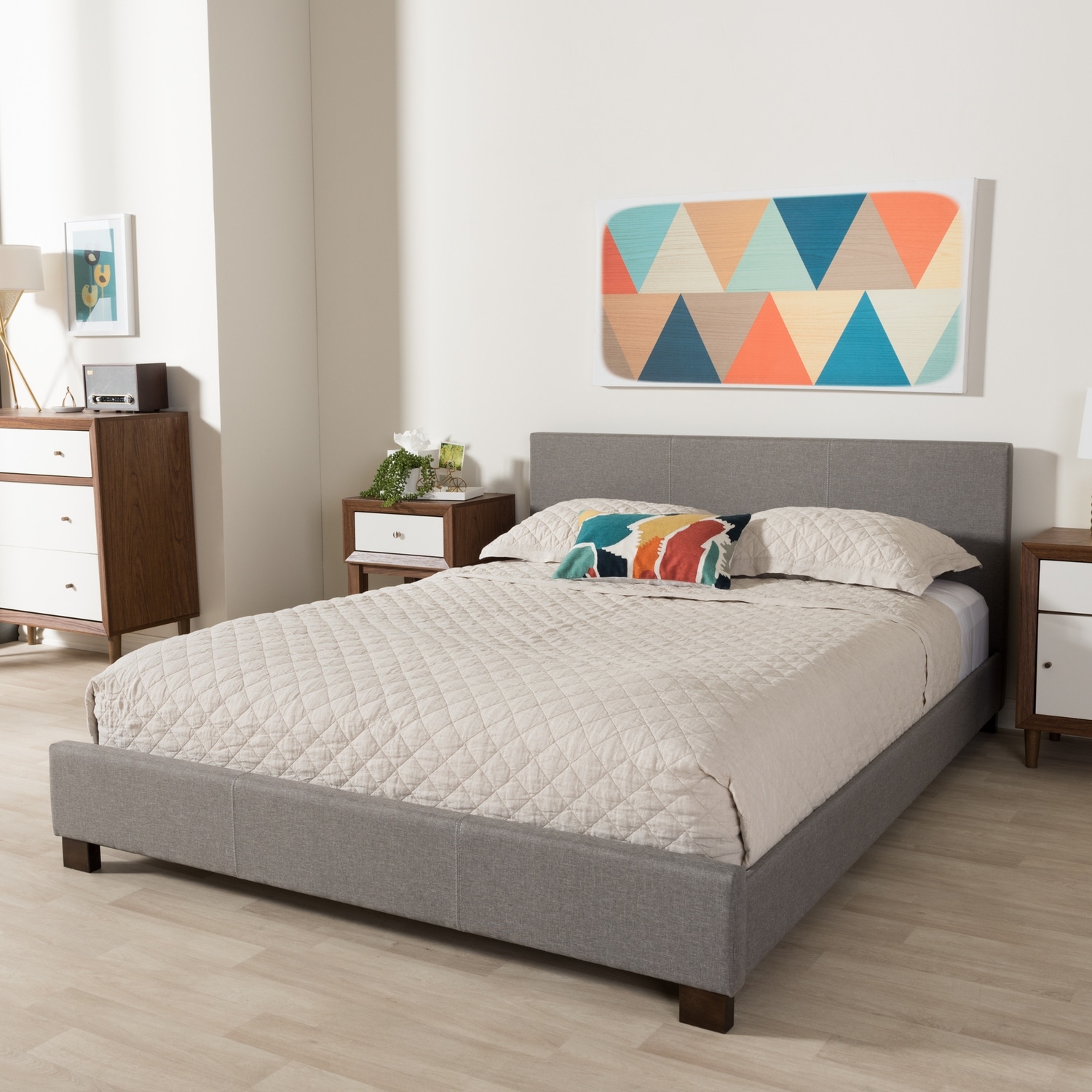 Full Platform Bed with Headboard - Gray Upholstered Comfort Bed Frame - Modern Bedroom Furniture