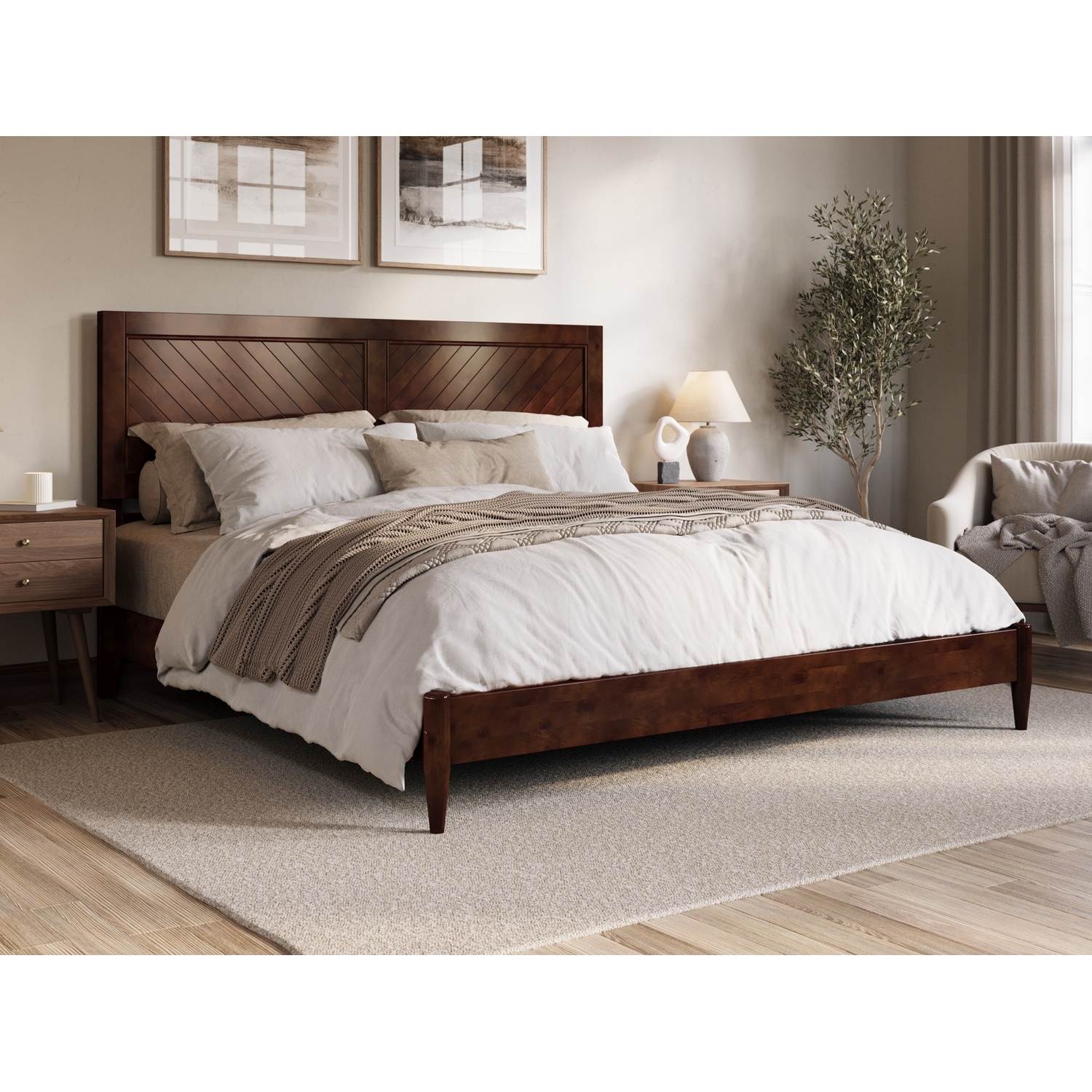 King Size Wood Platform Bed - Low Profile Solid Wood Bed Frame Walnut Finish
