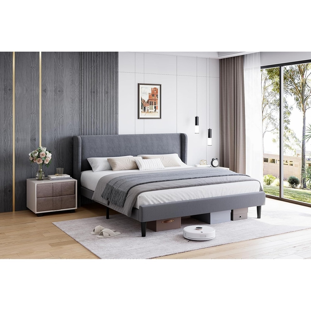 Wood Platform Bed Frame, Full/Queen/King Size Bed Frame with Headboard and Wood Slats Support, Large Under Bed Storage