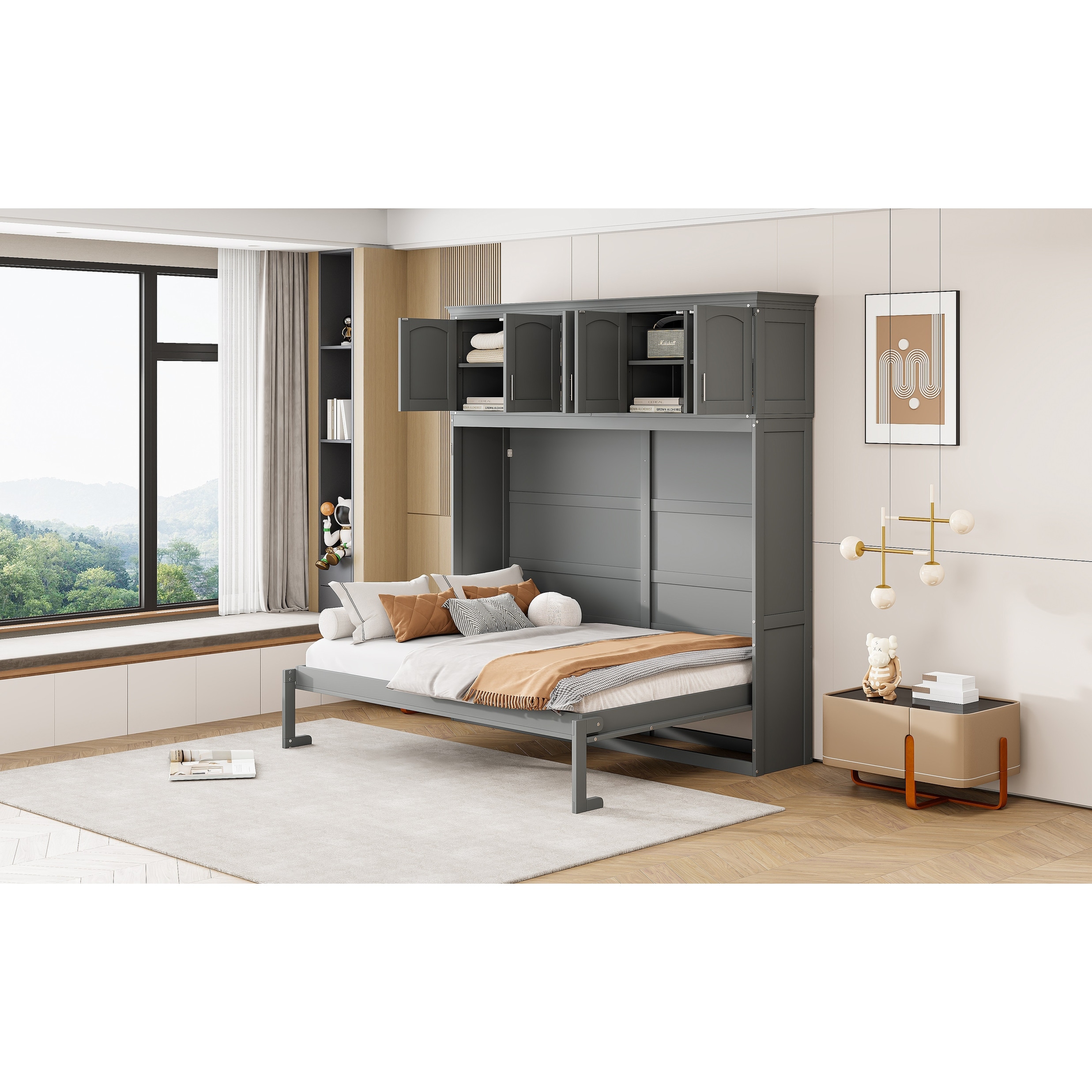 Roomfitters Wall Murphy Bed with Overhead Storage Cabinets
