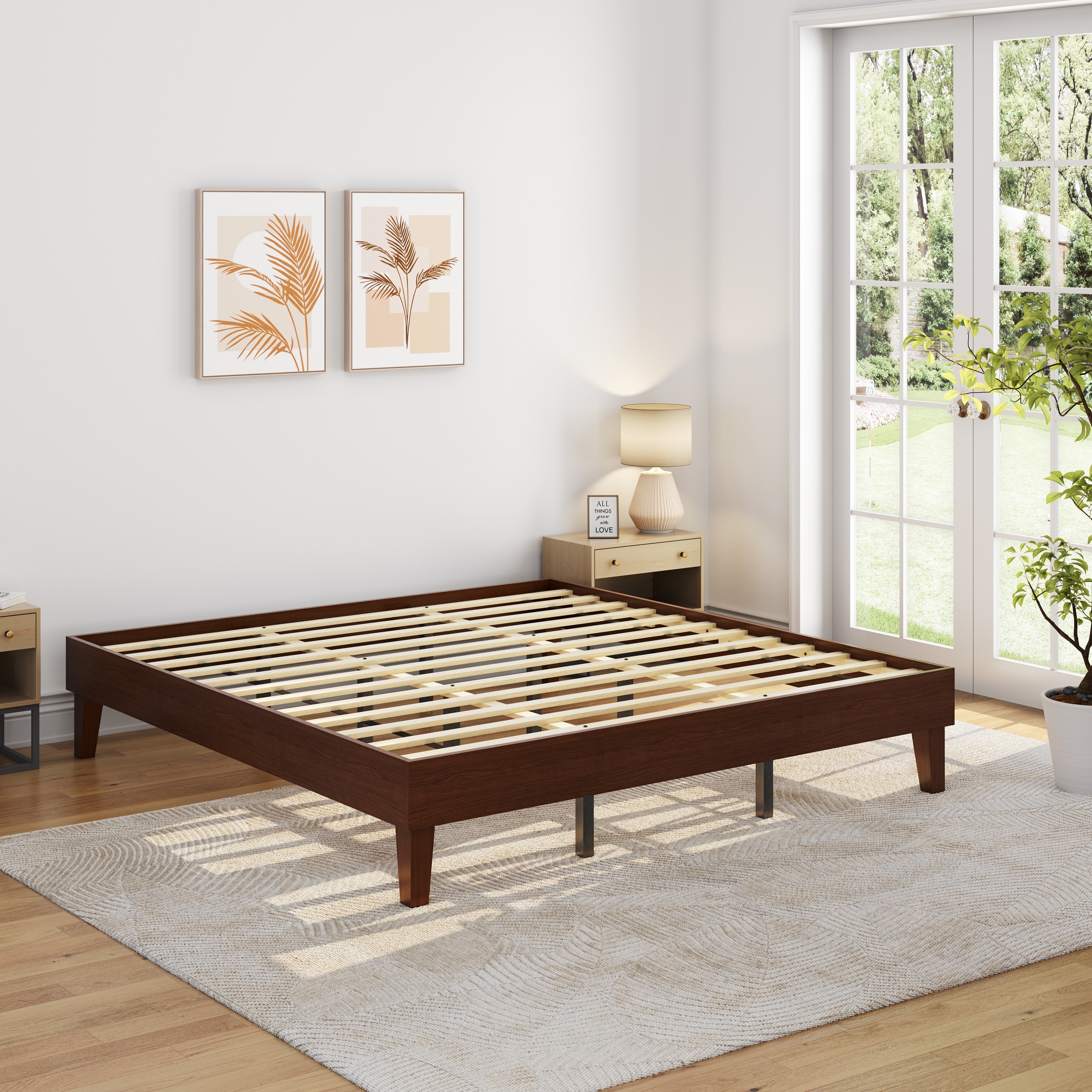 Yaheetech King Size Bed Frame Wooden Platform Bed Frame with Wood Slat Support