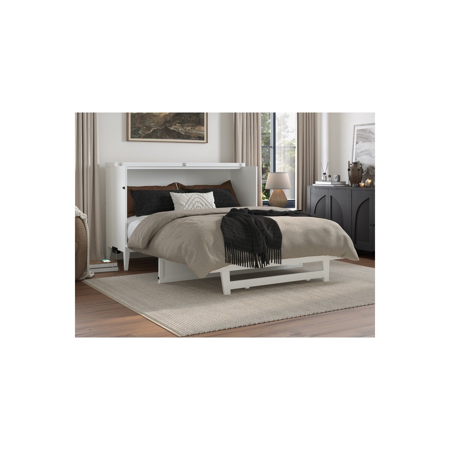 Solid Wood Murphy Bed Chest with Mattress & Charger - Twin, Full Sizes - Space Saving Furniture