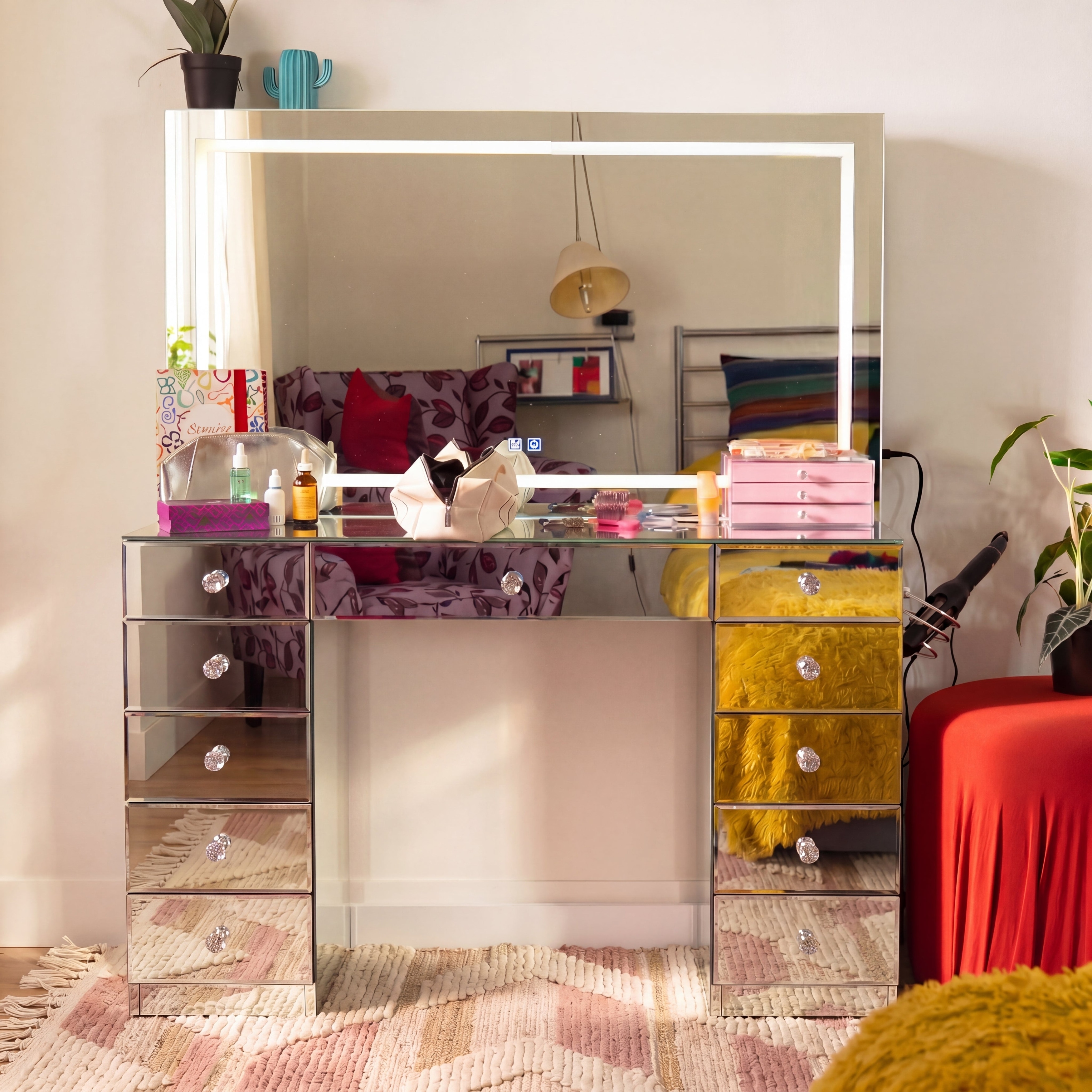 Vanity Dresser with Mirror and Stool Set Storage Drawers Luxury Furniture