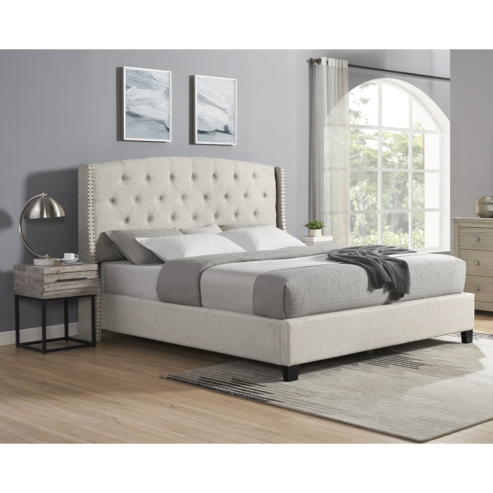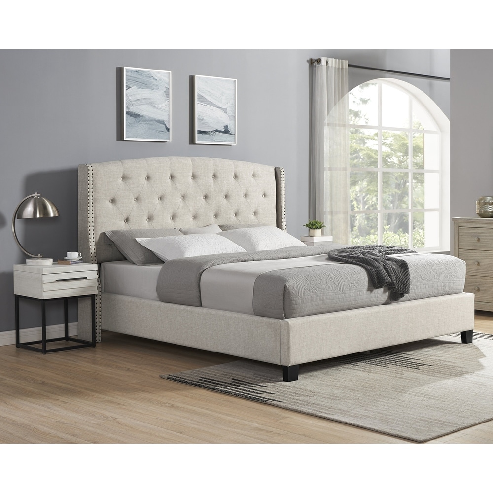 3-Piece Upholstered Bedroom Set with Tufted Wingback Bed and Two Nightstands