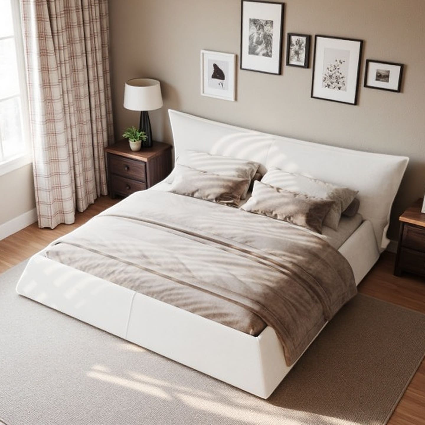 King Size Upholstered Platform Bed Chenille Thick Headboard and Footboard, Shell-Shape Design Beds, Beige