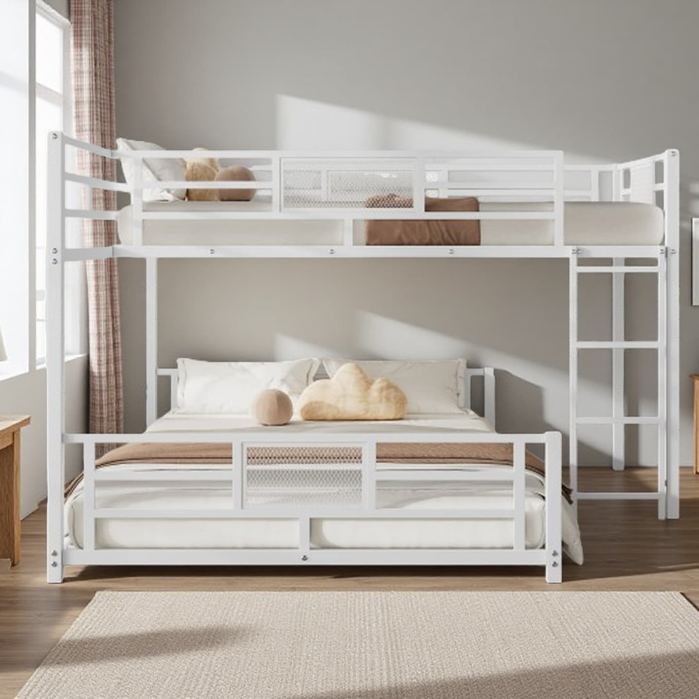 Twin Over Full L-Shaped Metal Bunk Bed, Space-Saving White Frame with Durable Steel Construction
