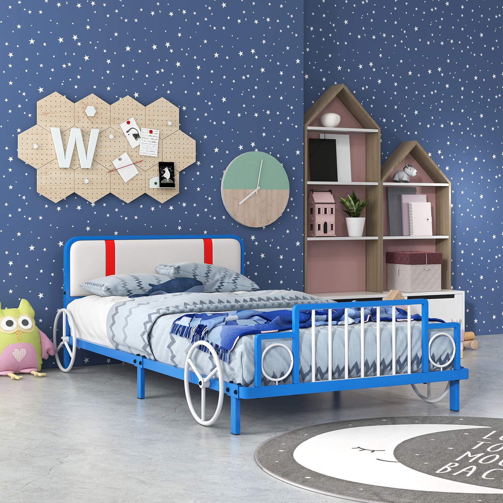 Twin Size Kids Bed Frame Car Shaped Metal Platform Bed With Upholstered Headboard Twin Size Kids Bed Frame Car Shaped Metal Platform Bed With Upholstered Headboard