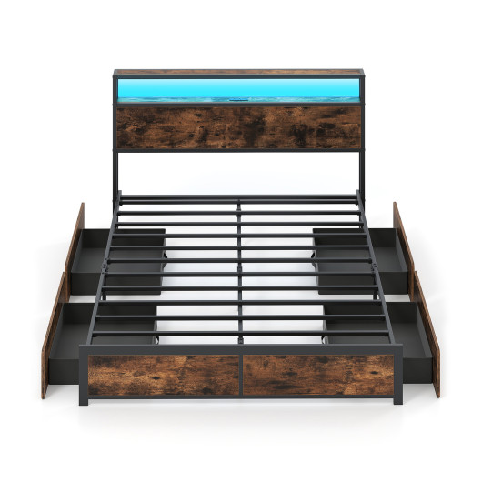 Costway Full/Queen Size LED Bed Frame with Charging Station and 4 Storage Drawers-Queen