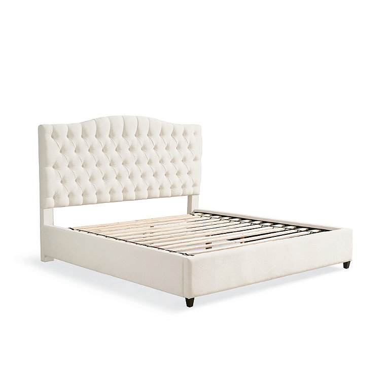 Grace Tufted Upholstered Platform Bed - Chenille Cream, Queen - Grandin Road
