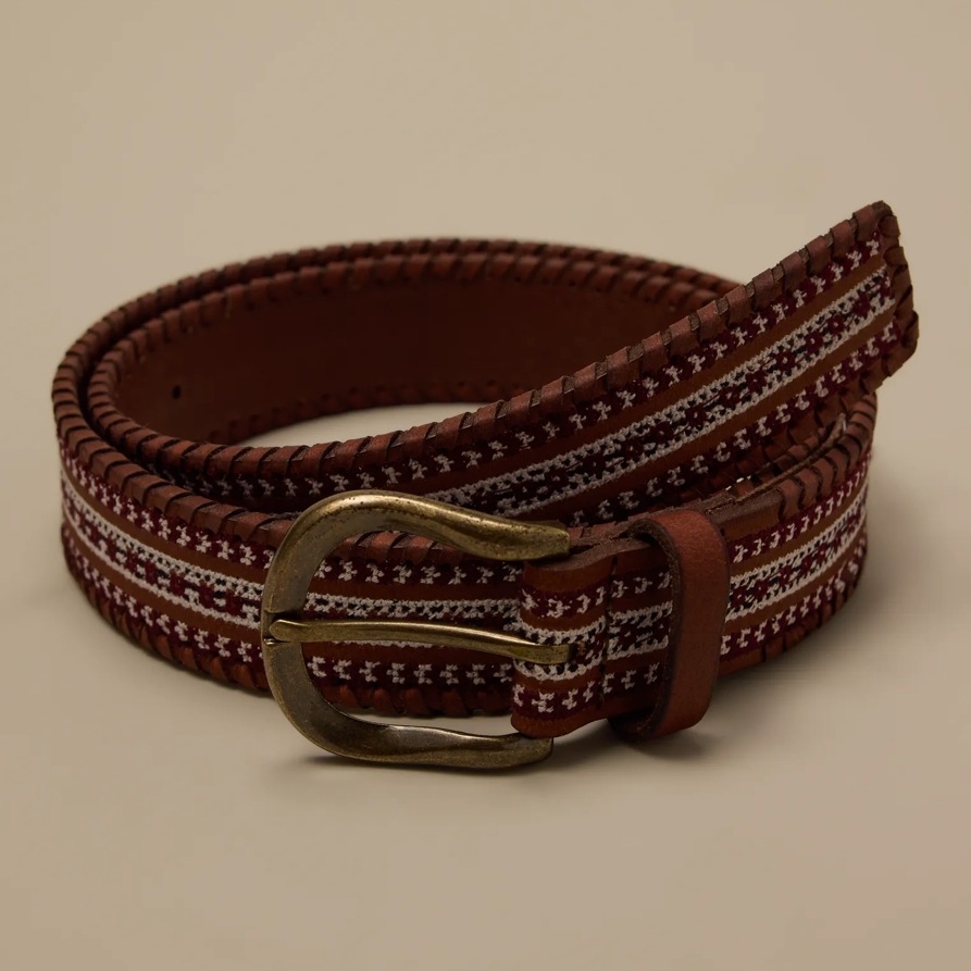 Lucky Brand Leather Laced And Embroidered Belt - Women's Accessories Belts in Brown, Size XS