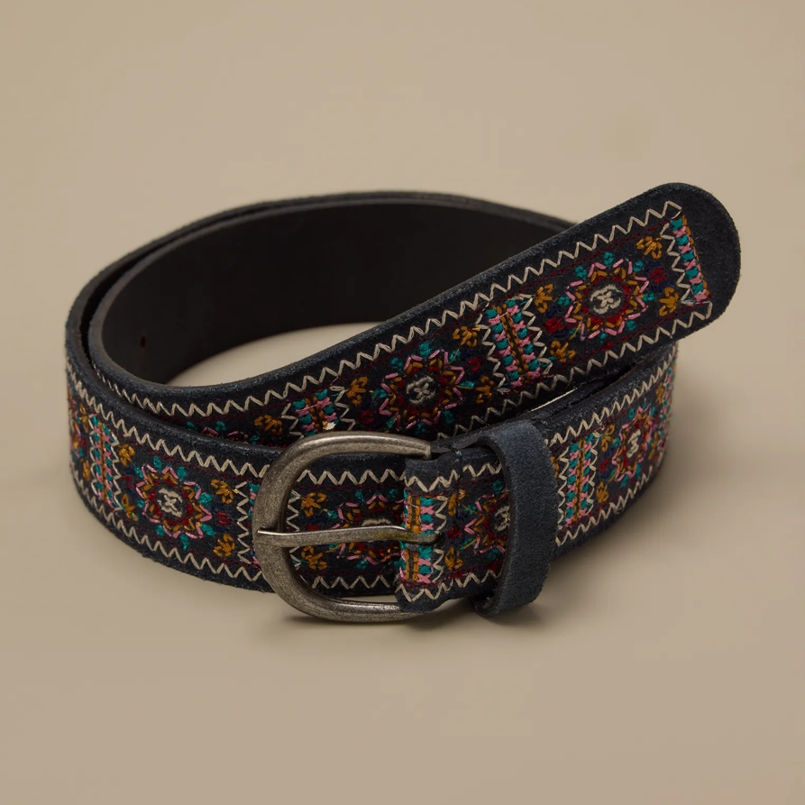 Lucky Brand Blue Suede Embroidered Be in Ocean Blue, Size M