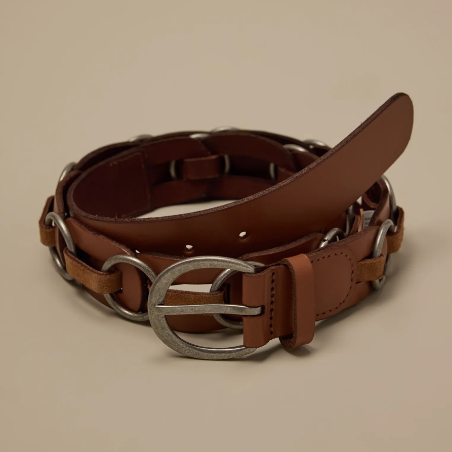 Lucky Brand Jump Ring And Leather Chain Belt - Women's Accessories Belts in Medium Brown, Size XS
