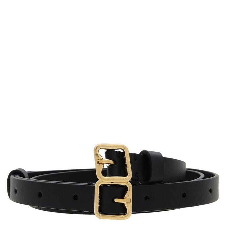Leather Double B Buckle Belt - Black - Burberry Belts