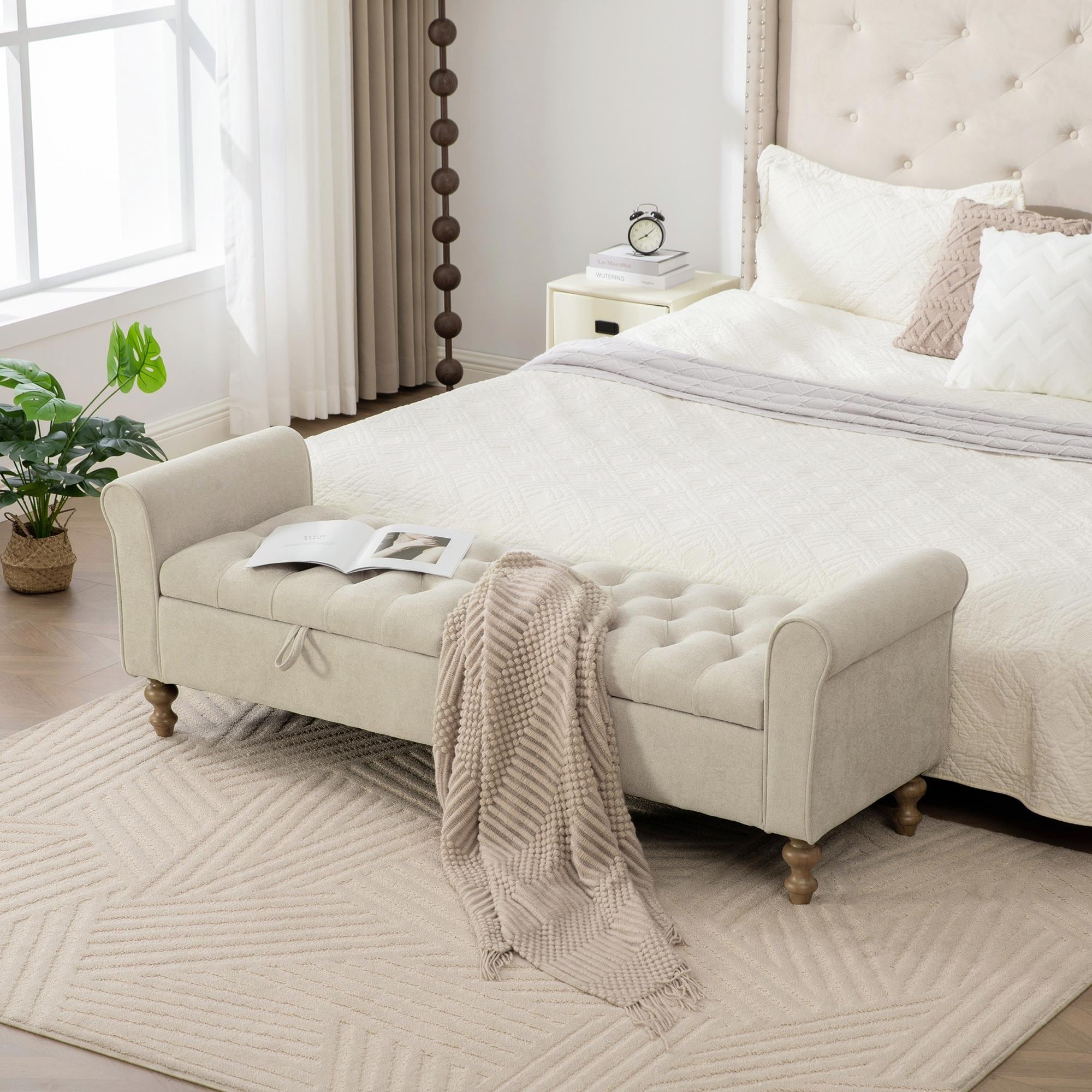 64.5" Bed Bench for Bed Room Nails Tufted Chaise of Lounge