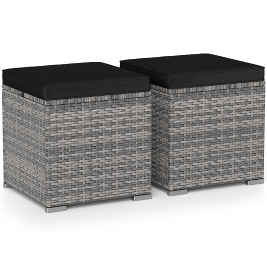 Costway 2 Pieces Patio Ottoman with Hidden Storage Space-Mix Grey-black