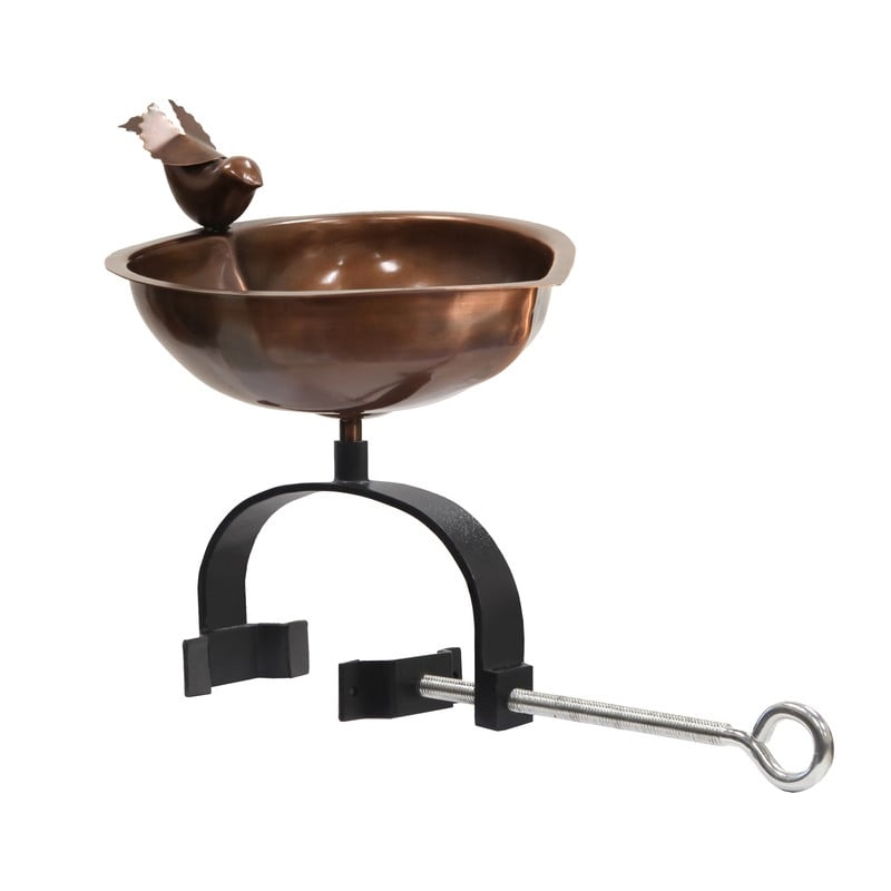 Achla Designs Stainless Steel Birdbath Bowl With Rail Mount Bracket, 16 Inch Diameter, Polished Copper Plated