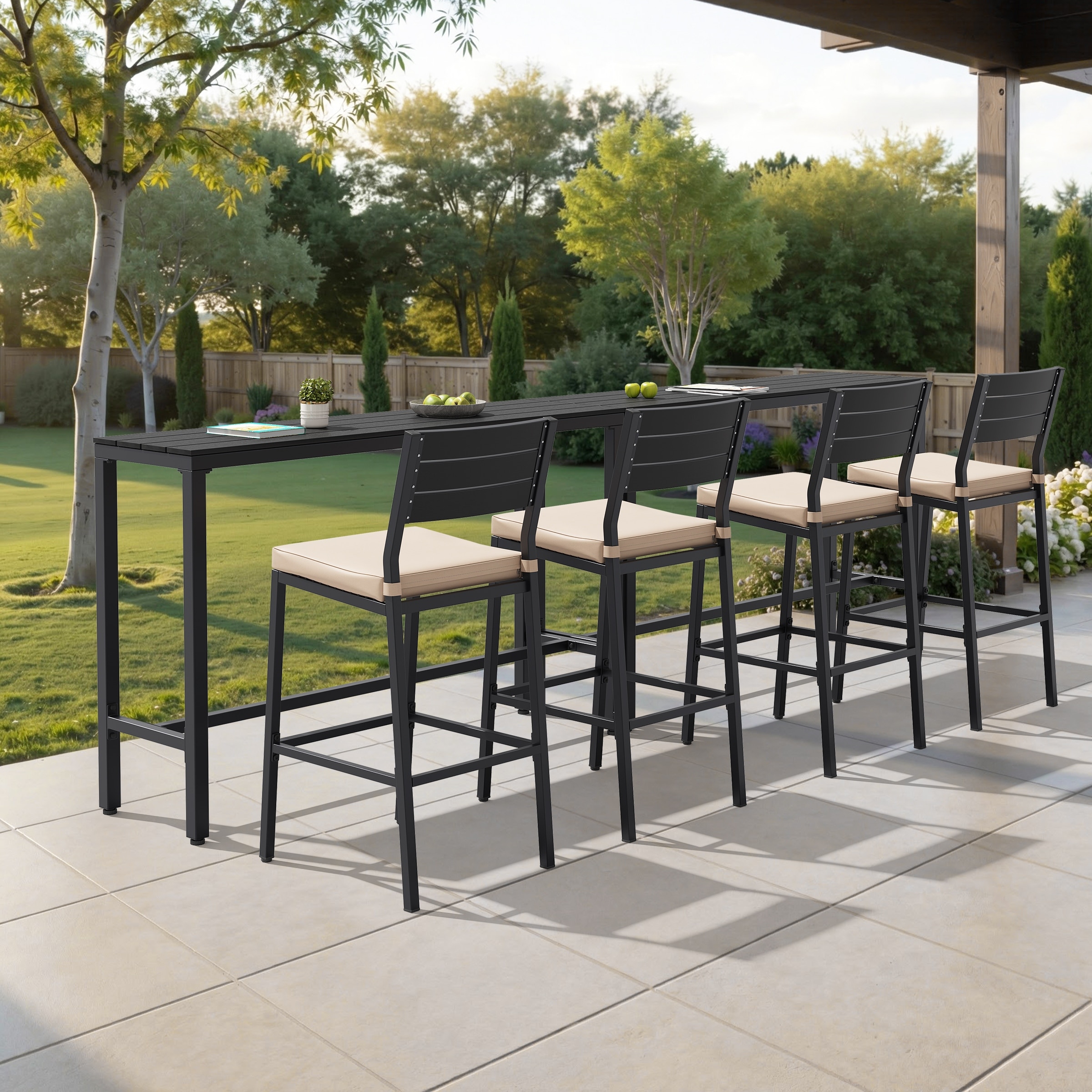 Outdoor 3-Piece Patio Bar Stools Set Rectangle Bar Table and Barstools with Cushion