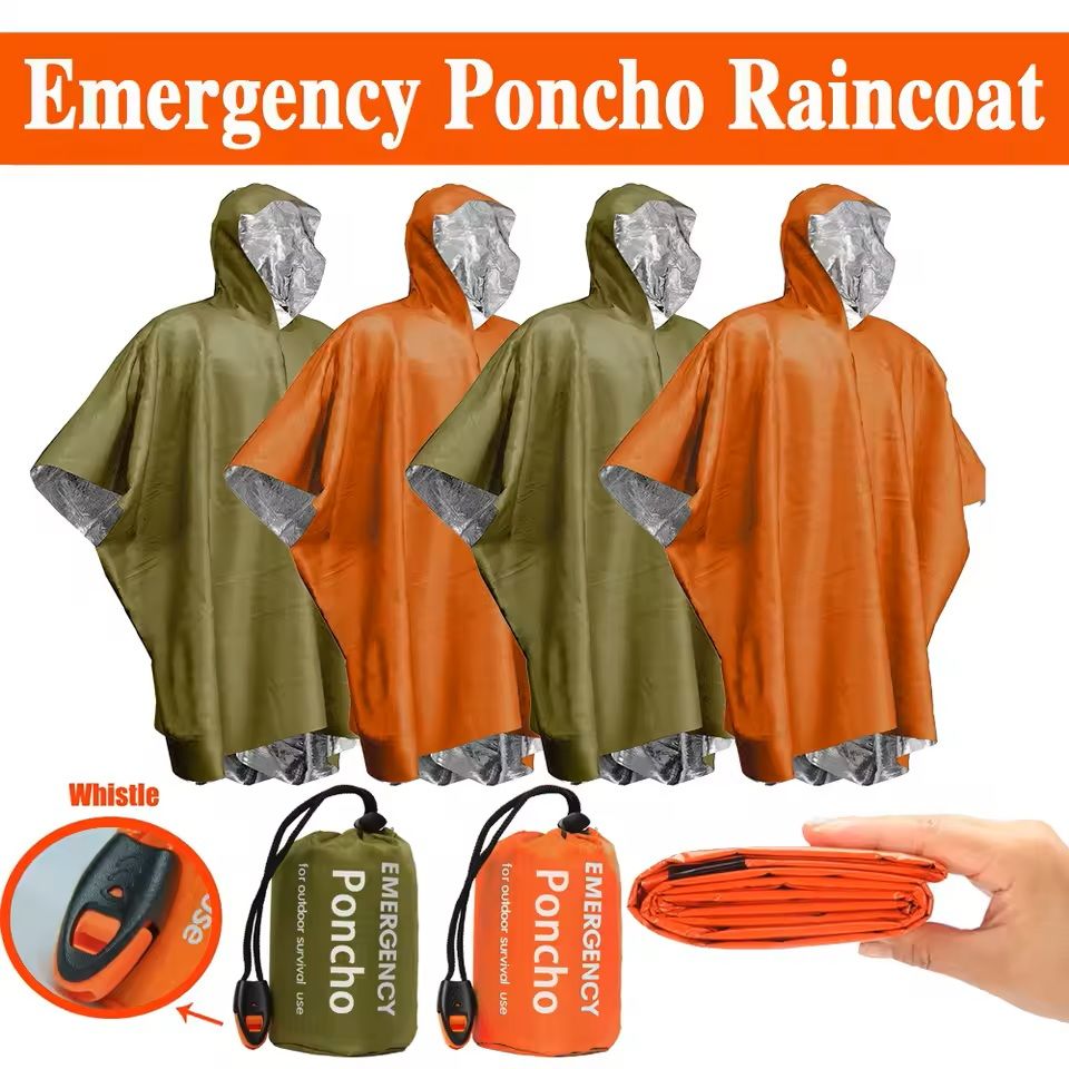 Emergency Waterproof Thermal Rain Poncho Blanket orange