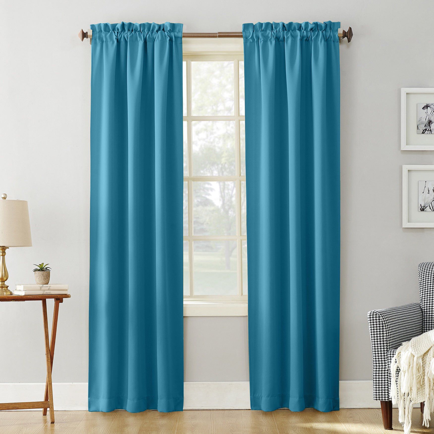Wide Width Sun Zero Blackout Greenwich Rod-Pocket Panel by BrylaneHome in Teal (Size 40" W 84" L)