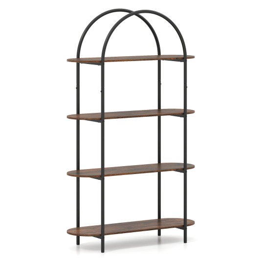Costway 4-Tier Bookshelf with Heavy Duty Metal Frame Industrial Display Shelf-Rustic Brown