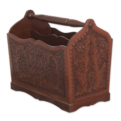 Cedar and leather magazine rack, 'Iquilla'