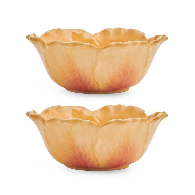 Fitz and Floyd Set of 2 Meadow Yellow Tulip Bowls, 18 Oz