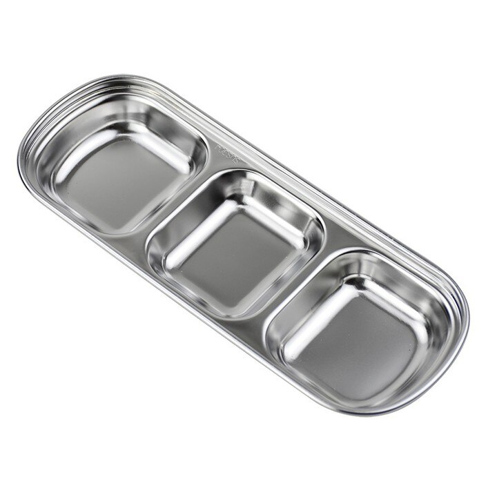 Stainless Steel Divided Dip Bowls Multi Compartment Condiment Tray For BBQ, Ketchup, Vinegar & Spices, Sauce Plates silver 3