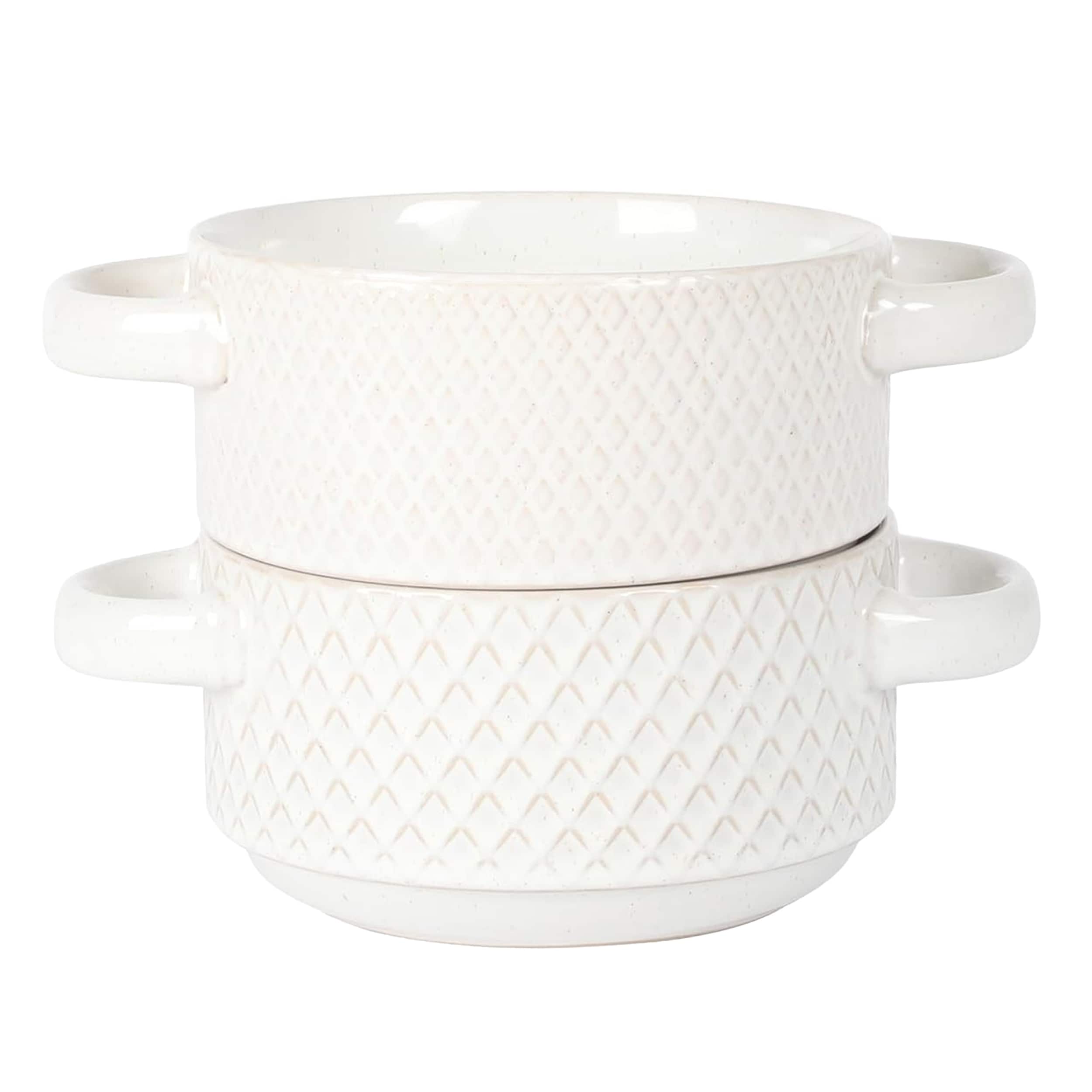 Gibson Set of 2, 6 Inch Ribbed Stoneware Soup Bowl Set with Handles in White