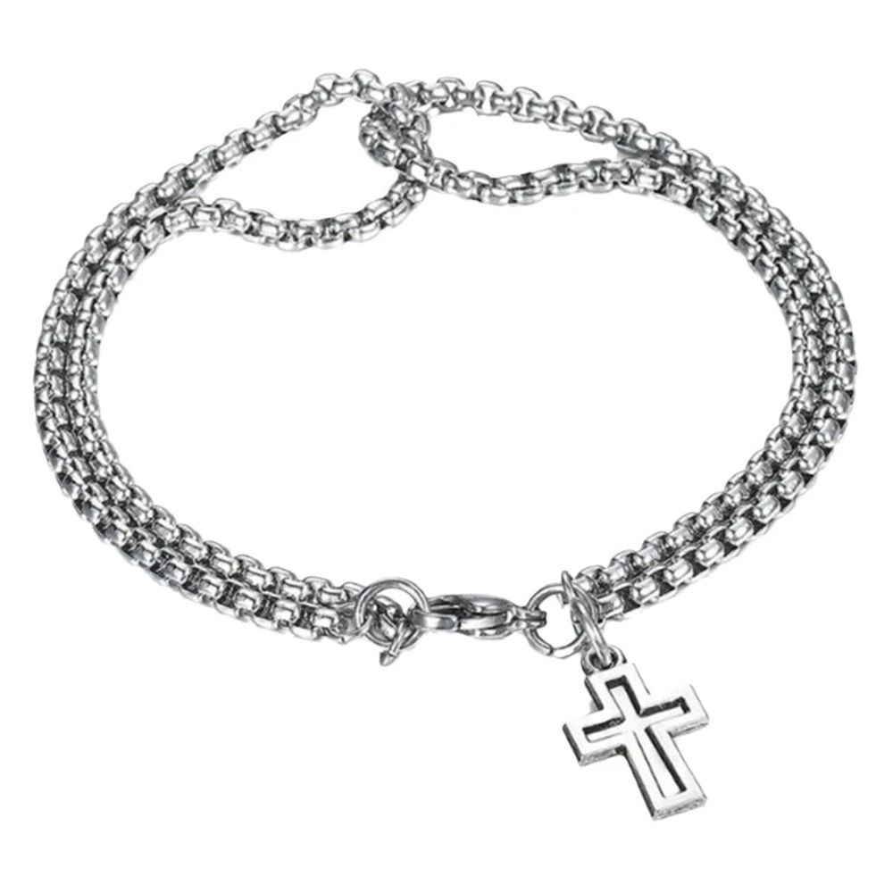 Double Chain Cross Bracelet Stainless Steel Punk Hip Hop Wristband Double Chain Cross Bracelet Stainless Steel Punk Hip Hop Wristband