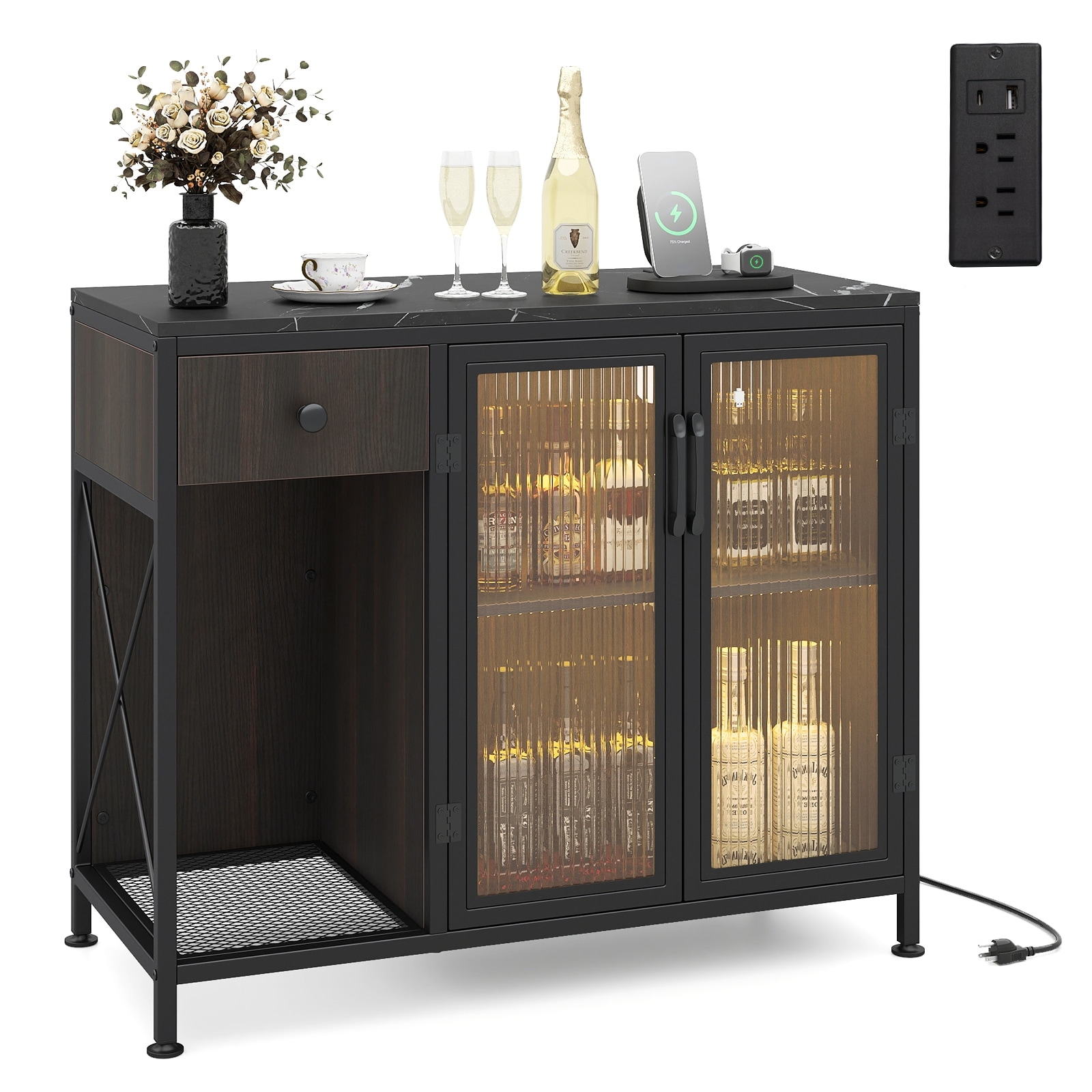 Spruce & Spring Rustic Solid Wood Sideboard with Cable Management