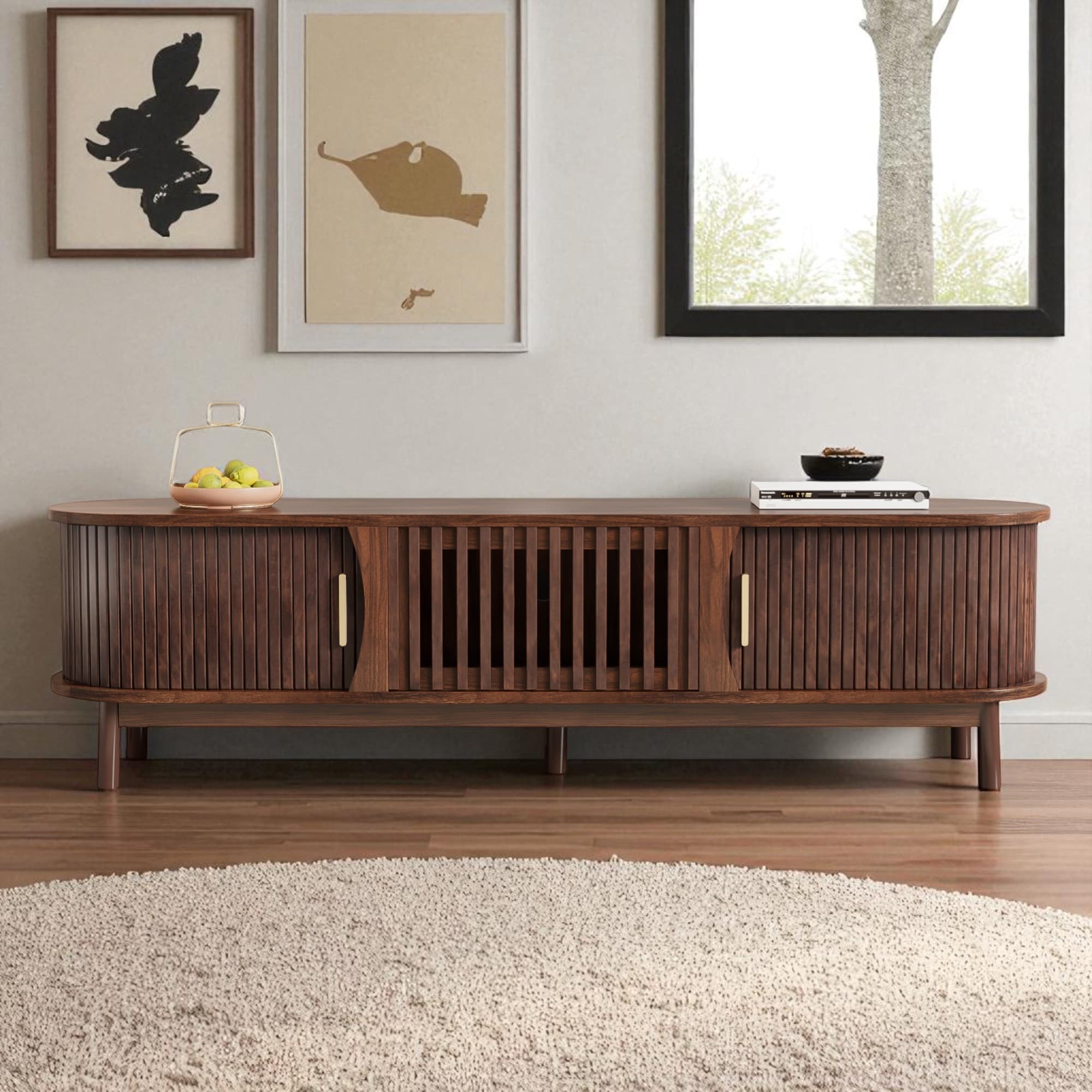 Modern Fluted Sideboard Buffet Storage Cabinet with Adjustable Shelves and Elegant Design
