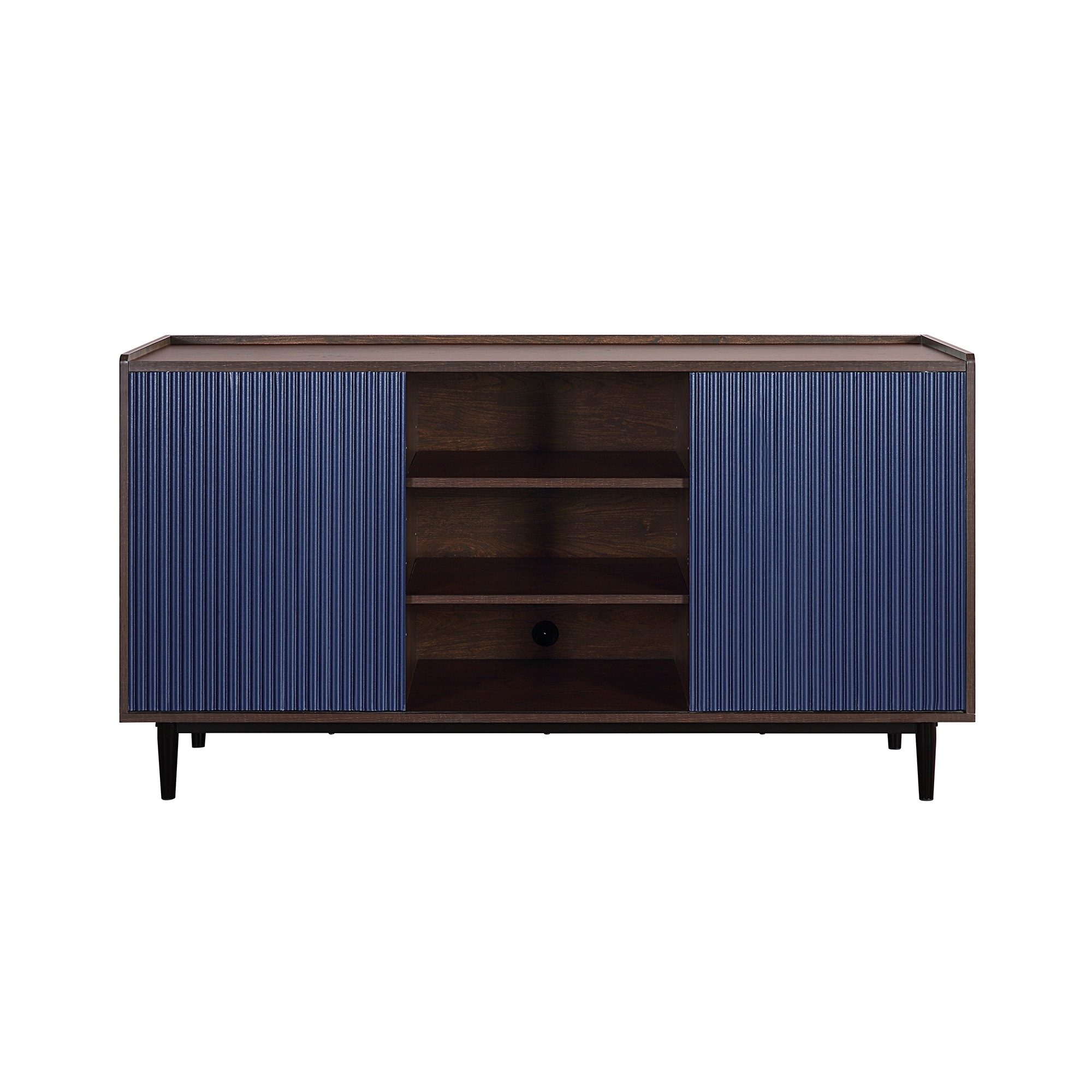 Mid-Century Modern Sideboard with Sliding Doors, 59" TV Stand & Buffet with Adjustable Shelves and Media Holes