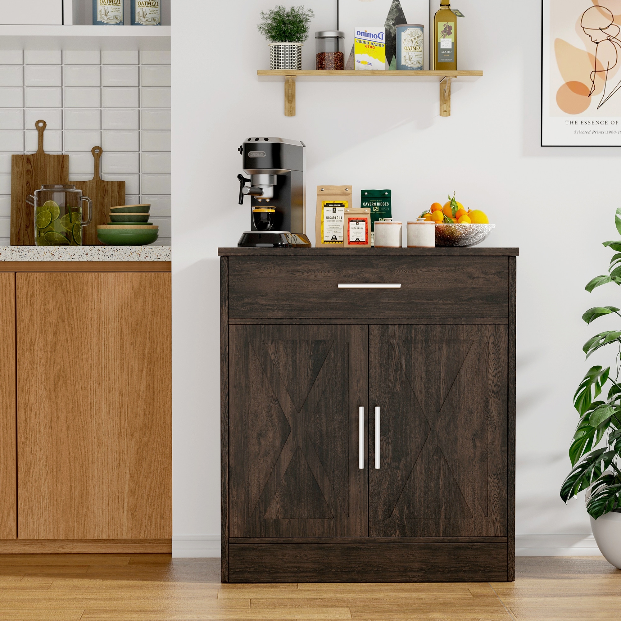 Costway 2-Door Wine Bar Cabinet Kitchen Sideboard Buffet with Drawer & - See Details