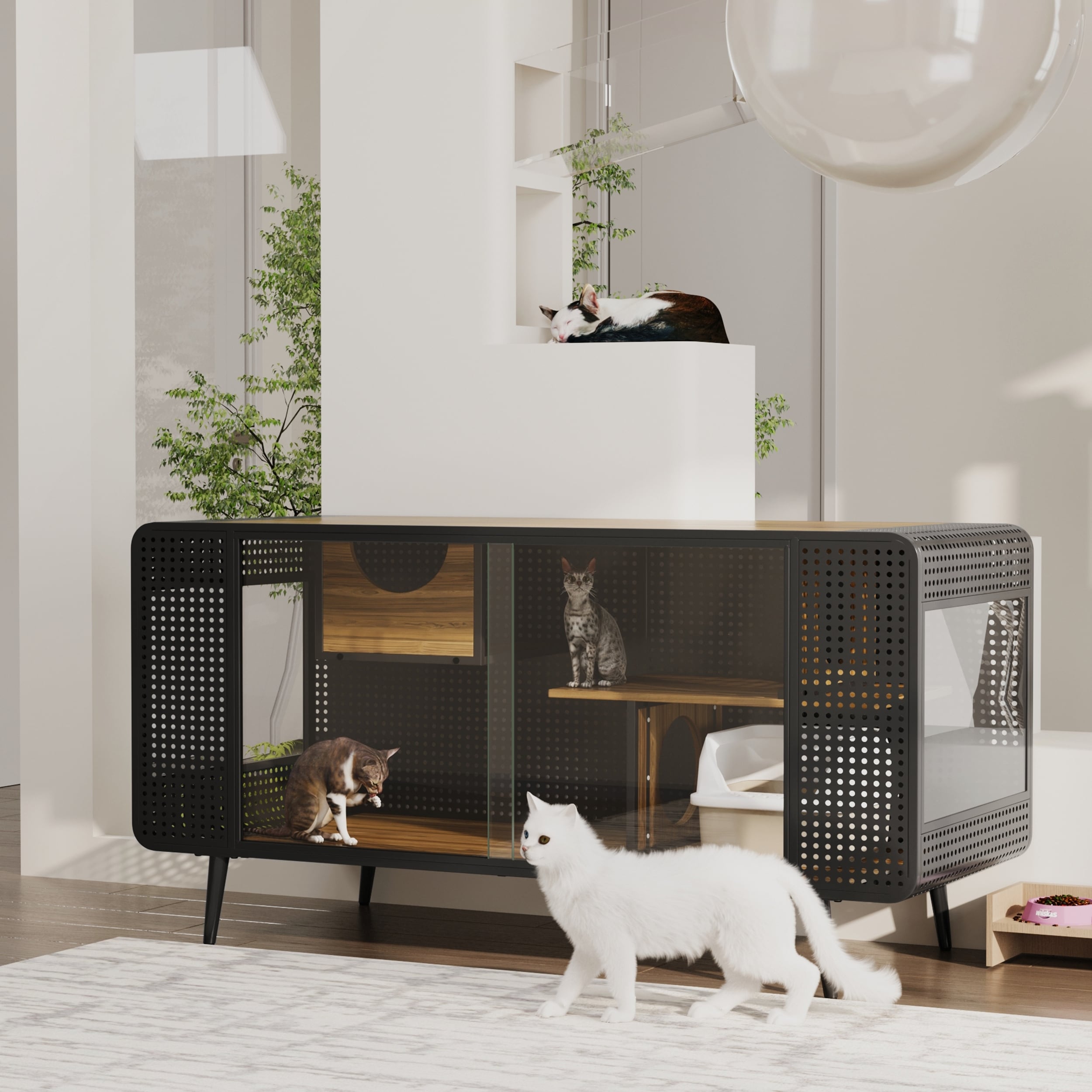 WAMPAT Modern Sideboard Buffet with Leather-Textured Doors