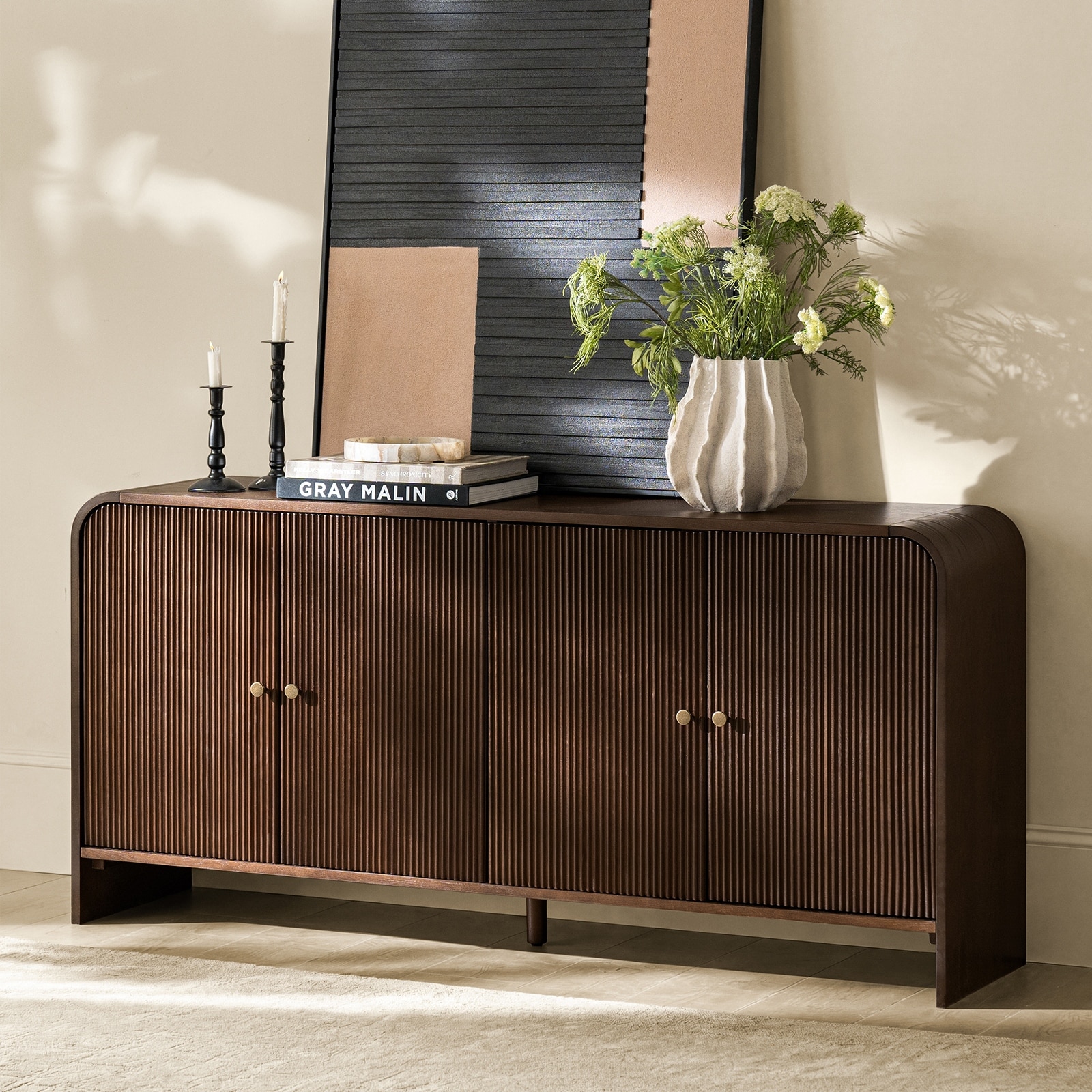 HULALA HOME Martha Modern 63''W Fluted Curved Contours Sideboard with Cable Management