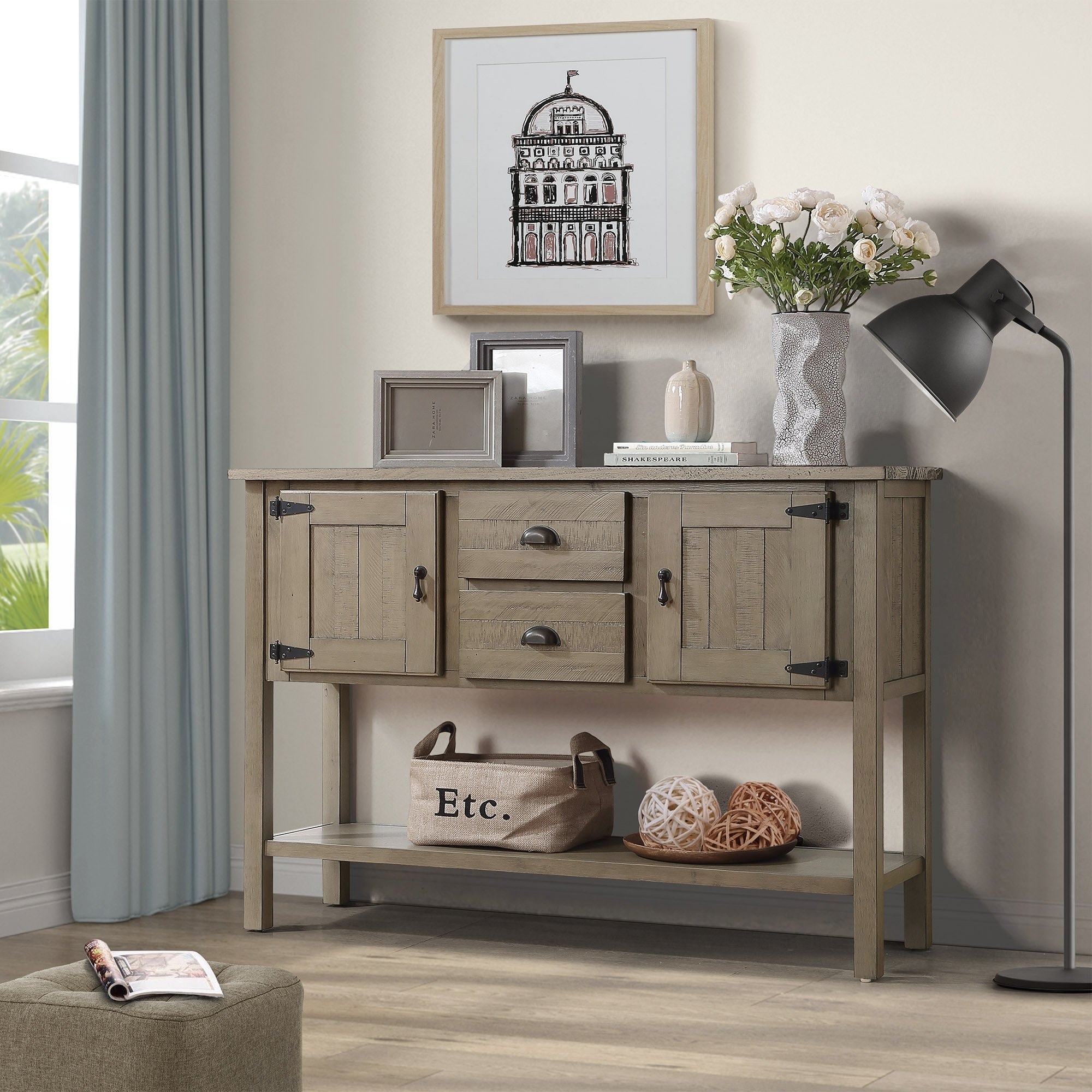 Solid Wood Sideboard Console Table with 2 Drawers and Cabinets