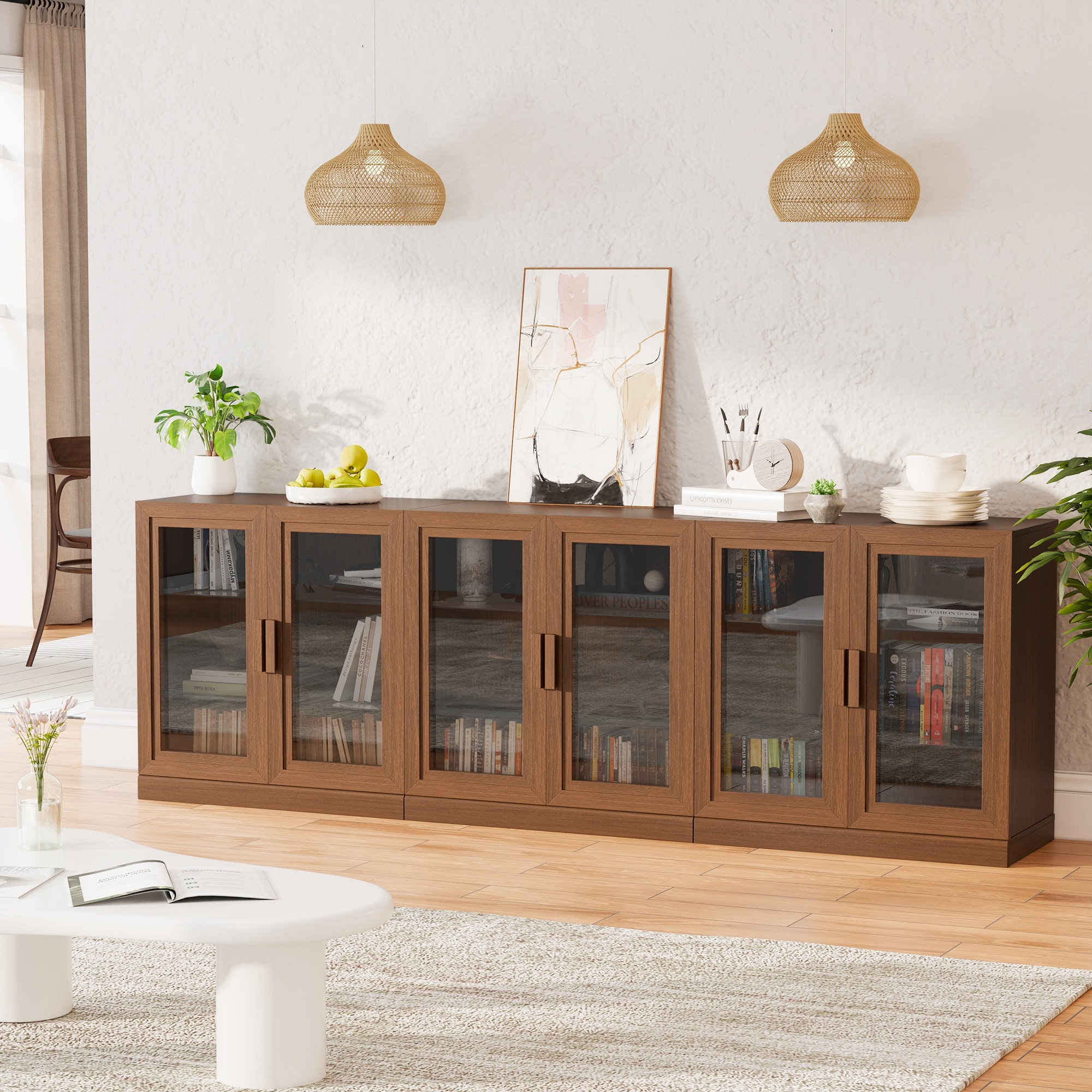 3-Set Glass Door Sideboard Buffet Storage Cabinets with Adjustable Shelves - 93"Lx31"H