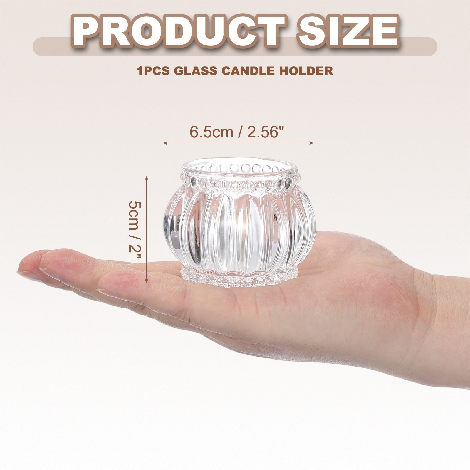 Tea Light Candle Holder Glass Round Stripes Votive Candle Holder for Home - 1Pcs