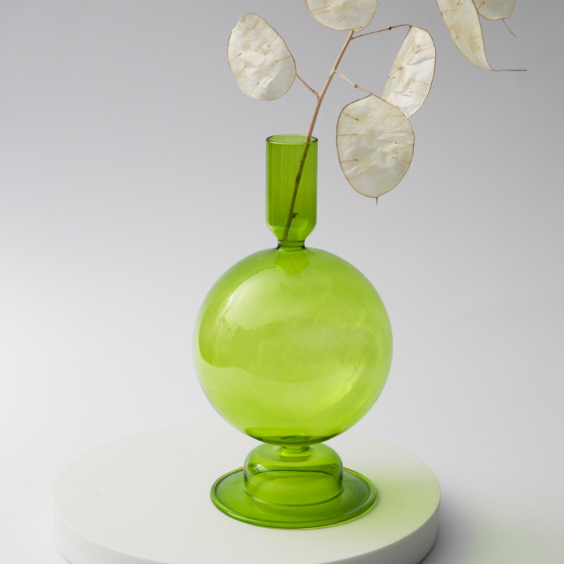 Glass Candlesticks For Home Wedding Table Floriddle Taper Candle Holders Glass Vase Bookshelf Candle Stand light Green Ball