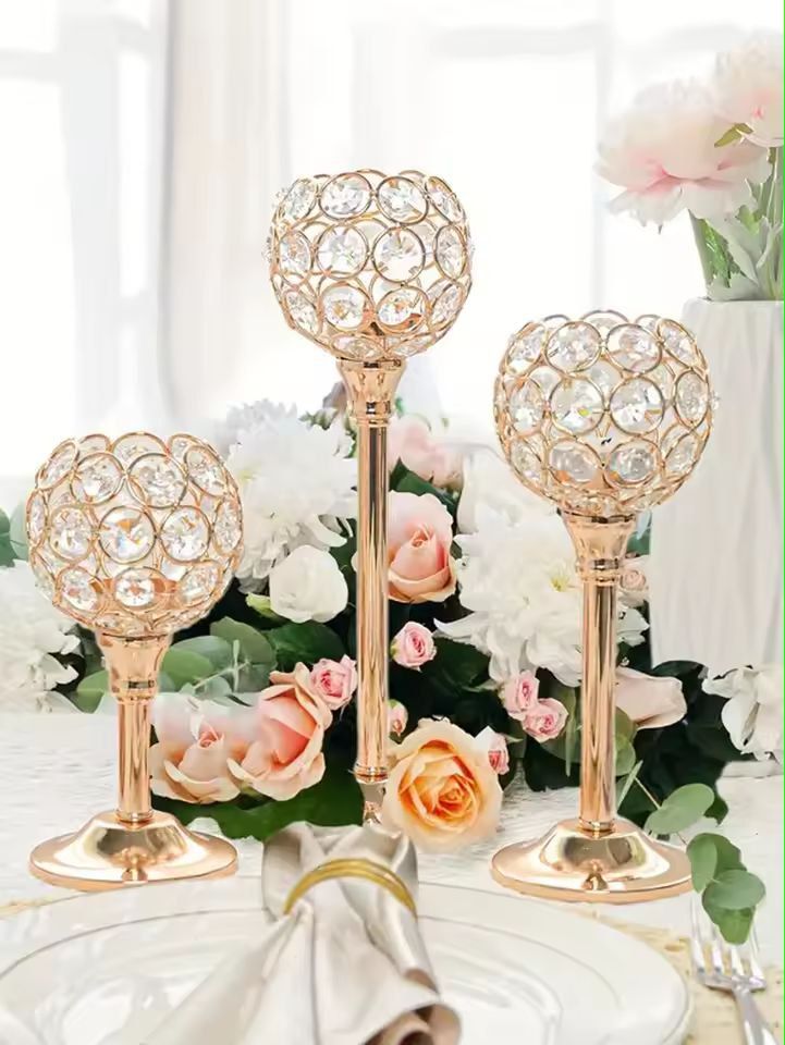 Glass Crystal Moroccan Candle Holder With Metal Hollow Design white B