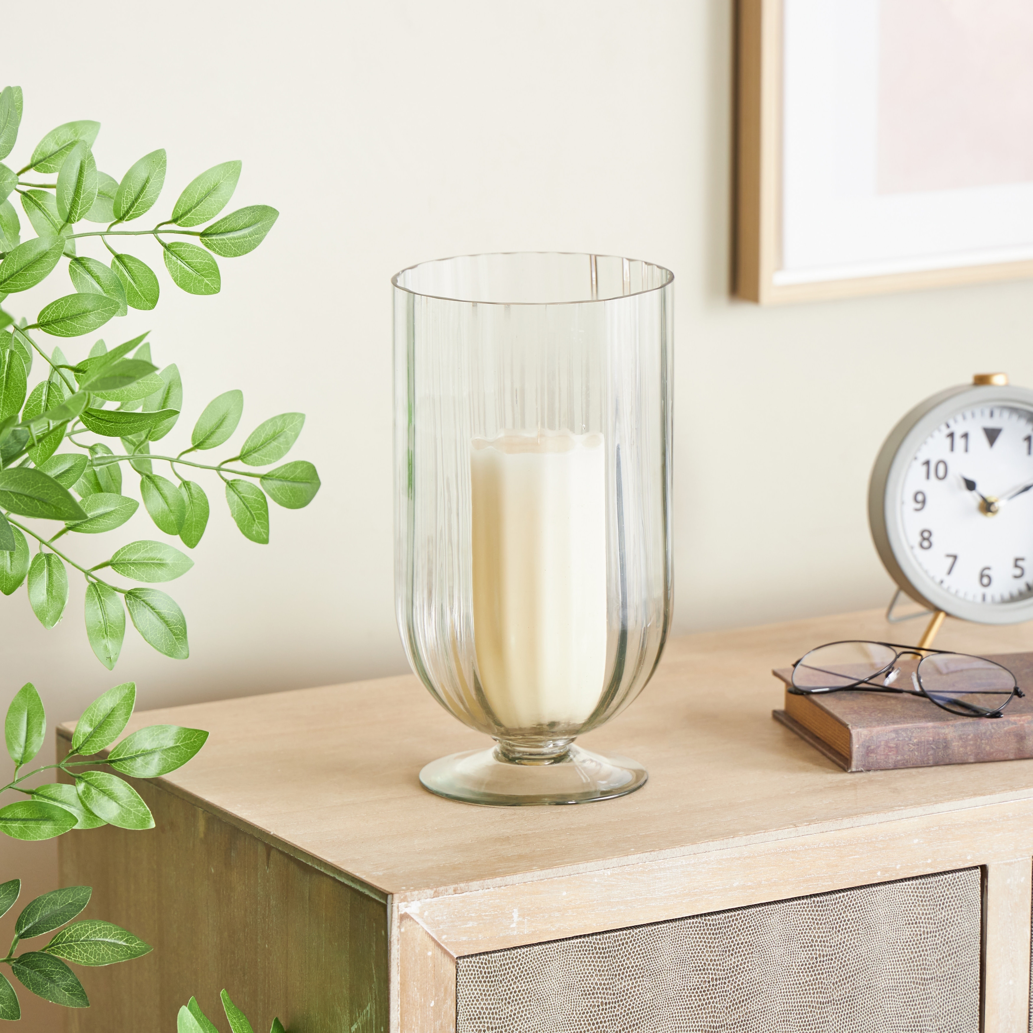 Clear Glass Ribbed Fluted Decorative Candle Holder with Elevated Base