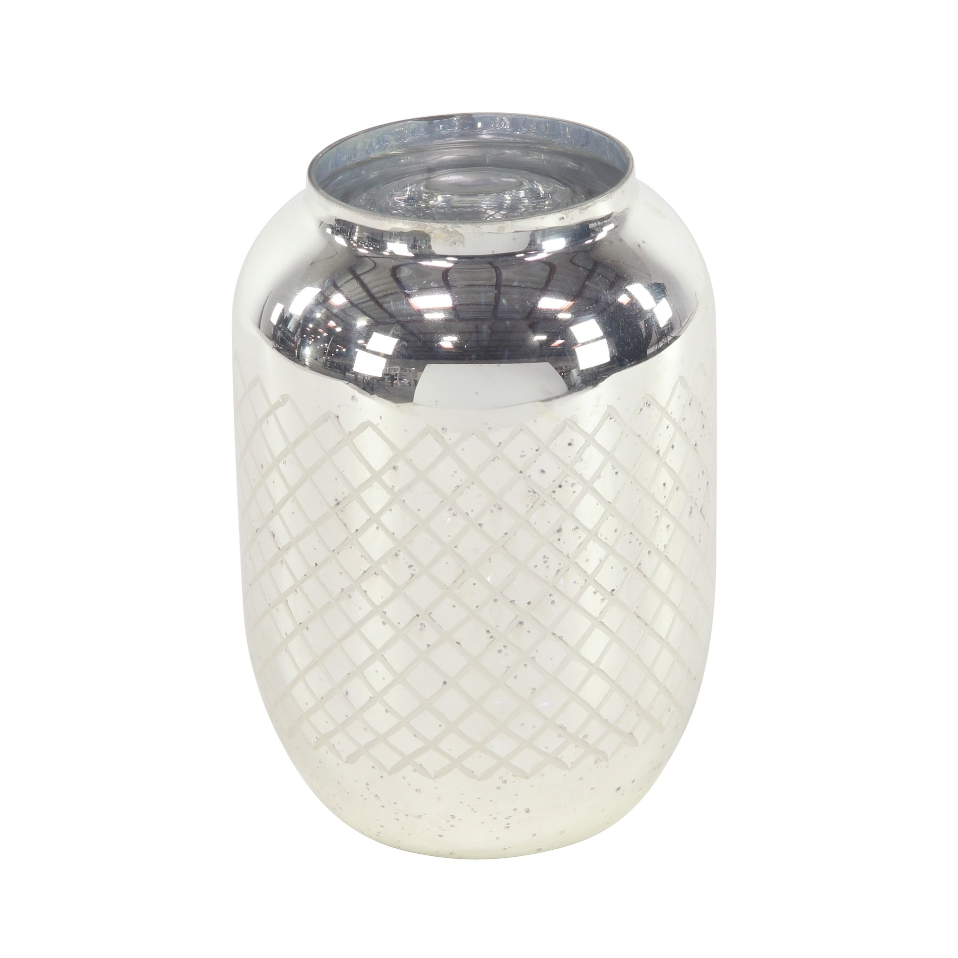 Modern 11 x 7 Inch Silver Glass Candle Holder
