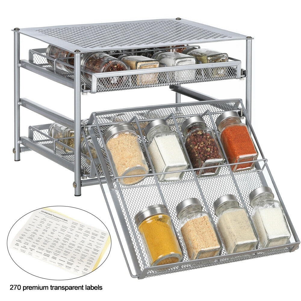 24-Bottle Spice Rack with Drawer Organizer, 3-Tier Metal